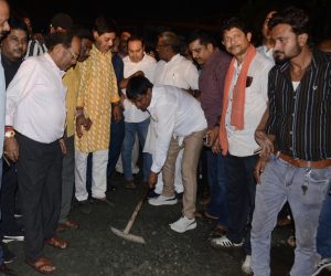 मरम्मत सामग्री के साथ पहुंचे गया पुल, खुद उठाया बेलचा, बोले-धनबाद के विकास के लिए राज्य सरकार से करेंगे बात