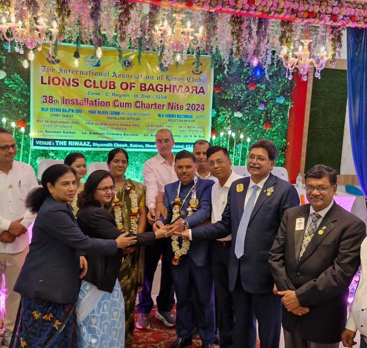 लायंस क्लब की नई टीम के साथ जिला पाल श्यामडीह में पदस्थापना सह चार्टर समारोह का आयोजन बाघमारा. लायंस क्लब बाघमारा का पदस्थापना सह चार्टर समारोह का आयोजन शनिवार की रात श्यामडीह, कतरास स्थित द रिवाज में हुआ. मुख्य तिथि लायंस इंटरनेशनल डिस्ट्रिक्ट 32 2 एके जिलापाल सीमा वाजपेयी, पदस्थापन प्राधिकारी राजीव लोचन, उप जिला पाल शुभ्रा मजूमदार, पूर्व जिलापाल एस के मजूमदार, रीजन चेयरपर्सन कमल अग्रवाल, अध्यक्ष सुभाष चंद्र वर्णवाल वरिष्ठ सदस्य जय मंगल सिंह, डॉ राजेंद्र प्रसाद आदि मौजूद थे. संस्कार ज्ञानपीठ के छात्रों ने गणेश वंदना पर नृत्य व छात्राओं एवं शिक्षिकाओं ने स्वागत गान प्रस्तुत किया. स्वागत भाषण शशि महथा, शांति प्रार्थना मो फैयाज व ध्वज अभिवादन खुशवंत देवा ने किया. संचालन एसएन राय व डॉ मुकेश राय ने किया. इस दौरान नयी कमेटी का शपथ पदस्थापना मल्टीपल डिस्ट्रिक्ट 322 के पदाधिकारी राजीव लोचन ने कराया. मौके पर के नीरजा राय, रेखा साहू, संजय मिस्त्री एवं मिथिलेश तिवारी सहित चार नये सदस्यों को शपथ दिलायी गयी. समारोह में लायंस इंटरनेशनल के सभी 10 क्लब ने सहभागिता दी. समारोह विशिष्ट अतिथि पूर्व जिलापाल सिद्धार्थ मजूमदार ने बाघमारा क्लब के सेवा कार्य को सराहा. निवर्तमान अध्यक्ष सुभाष वर्णवाल द्वारा संस्कार ज्ञानपीठ, स्व लालचंद महतो मेमोरियल ट्रस्ट, हेलीवाल मोटर्स एवं नेहरू बालिका उवि को क्लब के सहयोग के स्मृति चिह्न देकर सम्मानित किया गया. नव पदस्थापित अध्यक्ष डॉ मुकेश कुमार राय ने सभी का आभार जताया. इनकी रही उपस्थिति : निवर्तमान सचिव किशुन लाल महतो ने प्रतिवेतन प्रस्तुत किया. धन्यवाद ज्ञापन डा राजेंद्र प्रसाद ने दिया. नयी टीम डॉ मुकेश कुमार राय,अध्यक्ष, हिमांशु जमुआर एवं किशुन लाल महतो उपाध्यक्ष, सुनील कुमार सचिव संगीता कुमारी संयुक्त सचिव, संजय वर्णवाल कोषाध्यक्ष निदेशक मंडल में जय मंगल सिंह, सीताराम हेलीवल, सुभाष अग्रवाल, रघुनाथ महतो, गोबिंद हेलिवल, प्रोजेक्ट चेयरपर्सन प्रवीर राय, दिलीप अग्रवाल, शंकर पांडेय, प्रदिप्तो, खुशवंत देवा. मौके पर रीजन चेयरपर्सन कमल अग्रवाल, मदन मोहन, मिथिलेश कुमार, संतोष कुमार जेड सी, गोपाल अग्रवाल, निगम कुमार, सीतू हेलीवाल, सोमनाथ पूर्ति, प्रशांत पांडे, गिरधारी अग्रवाल, दिनेश पूरी, डॉ आरके शर्मा, डॉ उमा शंकर सिंह, डॉ वीके चौधरी, विजय सिंह, डॉ स्वतंत्र कुमार, लक्ष्मी रवानी, दिलीप सुबुकी, अनिल आशुतोष आदि.