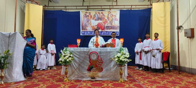 Dhanbad News: गुरुवार को संत एंथोनी चर्च में पुण्य गुरुवार मनाया गया. इसे अंतिम ब्यारी के नाम से भी जाना जाता है. इस अवसर पर चर्च के फादर अमातुस कुजूर ने चुने हुए 12 शिष्यों के पैर धोये. फादर अमातुस कुजूर ने कहा कि जीवन में दिन प्रतिदिन प्रभु यीशु के प्रति अपनी भक्ति बढ़ाते रहें. इसी दिन प्रभु यीशु ने 12 चेलों के पैर धोए थे और पड़ोसी प्रेम का अनमोल उदाहरण प्रस्तुत किया था. प्रभु यीशु पैर धुलवाने से संकोच कर रहे अपने चेलों से कहा था कि तुम मुझे गुरु और प्रभु कहते हो. यदि मैं प्रभु और गुरु होकर भी तुम्हारे पैर धोता हूं तो तुम भी वैसा ही किया करो. यह किसी के प्रति अपने प्रेम का सबसे बड़ा प्रमाण है. इसी विशेष घटना के स्मरण में चुने हुए 12 शिष्यों के पैर फादर ने धोये. इन शिष्यों में रिचर्ड टोप्पो, भाग्य प्रसाद, संजय सोरेन, अनूप दत्ता, सुधीर बाखला, इमिल प्रकाश टोप्पो, एलबिनुस एक्का, विवेकानंद मिंज, देवनिश खलखो, रॉबर्ट गार्डनर, डेरिस फर्नांडिस तथा सीजे एंथोनी शामिल थे. इस दौरान प्रार्थना सभा को भी फादर ने संबोधित किया. मौके पर काफी संख्या में मसीही भाई बहन उपस्थित थे. कार्यक्रम को सफल बनाने में शिशिर प्रभात तिर्की, एतवा टूटी, प्रवीण लोंमगा, जॉन कैम्प, अनूप दत्ता आदि की सराहनीय भूमिका रही.