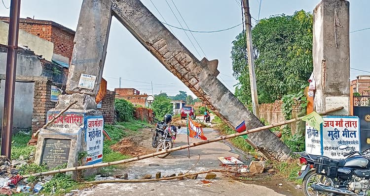 Dhanbad News:बलियापुर थाना क्षेत्र अंतर्गत परघा-बरमसिया रानी रोड स्थित कुसमाटांड़ मोड़ पर वर्ष 2007 में तत्कालीन सांसद ददई दूबे के मद से निर्मित शहीद मनींद्रनाथ मंडल गेट को सोमवार की रात अज्ञात तत्वों ने ध्वस्त किया. इससे आक्रोशित सूड़ी समाज व ग्रामीणों ने मंगलवार की सुबह हंगामा किया. करीब डेढ़ बजे ग्रामीणों, मंडल समाज, झामुमो, मासस, माले, कांग्रेस, भाजपा, जेएलकेएम के कार्यकर्ताओं ने झरिया-बलियापुर रोड को जाम कर धरना पर बैठ गये. सूचना मिलते ही बलियापुर थानेदार आशीष भारती दलबल के साथ पहुंचे और वार्ता की. करीब दो घंटे बाद जाम हटा. इस दौरान वाहनों की लाइन लग गयी थी.