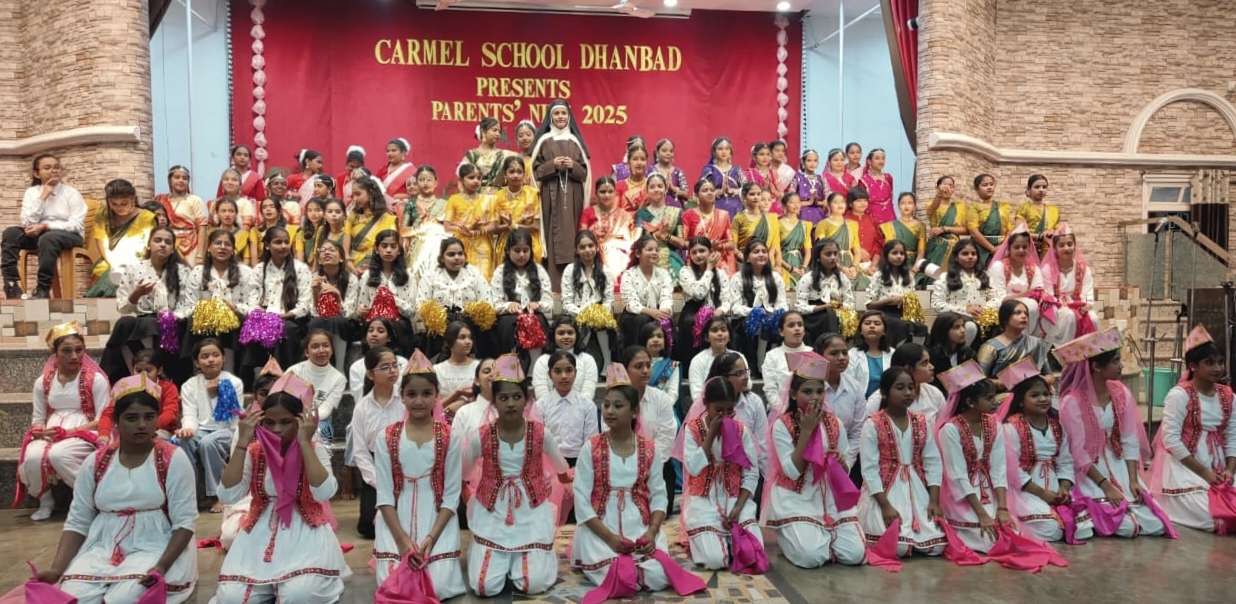 Dhanbad News: कार्मेल स्कूल धनबाद में छठी कक्षा बच्चों के पैरेंट्स नाइट 2025 का आयोजन शुक्रवार को किया गया. कार्यक्रम की शुरुआत सिस्टर श्रेया, सिस्टर सिल्वी, सिस्टर एल्सी जोसेफ तथा आमंत्रित अभिभावकों ने संयुक्त रूप से दीप प्रज्ज्वलित कर की. अतिथि परिचय शिक्षिका सुष्मिता और स्वागत भाषण शिक्षिका बबीता ने दिया. समारोह में प्राचार्या सिस्टर सिल्वी ने अभिभावकों का स्वागत करते हुए विद्यालय के प्रति उनके सहयोग की सराहना की. इस दौरान छात्र-छात्राओं ने प्रार्थना नृत्य, प्रेरणादायक गीत और मदर वेरोनिका को समर्पित प्रस्तुति से वातावरण को भावपूर्ण बना दिया. भारत के चार राज्यों के पारंपरिक नृत्यों से बच्चों ने अभिभावकों व अतिथियों को मंत्रमुग्ध कर दिया. अभिभावकों ने बच्चों की प्रतिभा की प्रशंसा की. कार्यक्रम का समापन जोरदार तालियों के साथ हुआ. अंत में शिक्षिका अंकिता ने आभार जताया. कक्षा छह बी की छात्रा रिद्धि बचुका को उत्कृष्ट समग्र प्रदर्शन के लिए छात्रवृत्ति प्रदान की गयी.