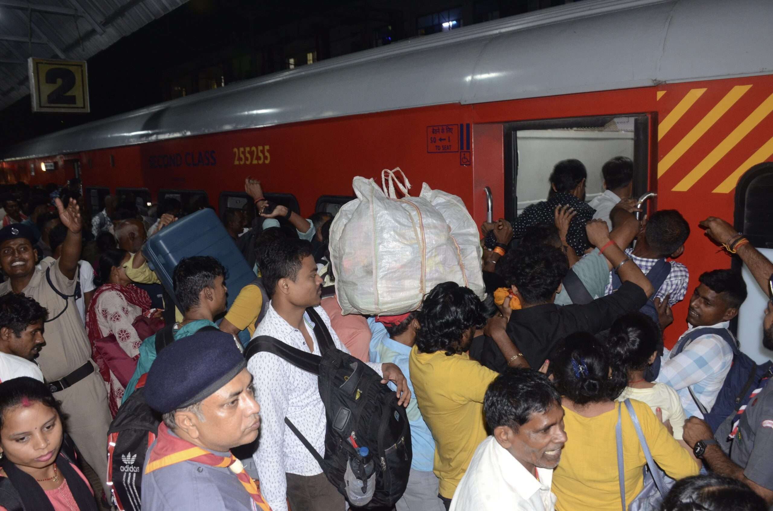 रात 9.35 बजे मौर्य एक्सप्रेस धनबाद रेलवे स्टेशन पर पहुंची. लेकिन यह ट्रेन पहले से पूरी तरह भरी हुई थी. इसके बाद भी यहां ट्रेन के रुकते ही यात्री सिर पर सामान उठा कर ट्रेन में किसी तरह सवार होने को लेकर भाग दौड़ करते दिखे. सामान्य कोच में पैर रखने तक के लिए जगह नहीं थी, ऐसे में कई लोग स्लीपर कोच की ओर दौड़ लगाते दिखे.गंगा दामोदर का इंतजार करते दिखे यात्री