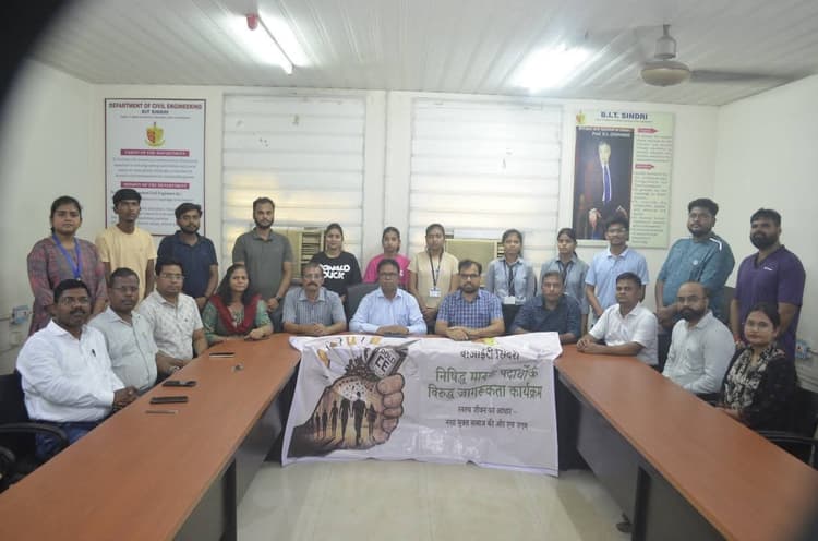 Dhanbad News: बीआइटी सिंदरी के असैनिक अभियंत्रण सभागार में मादक पदार्थों के विरुद्ध जागरूकता कार्यक्रम के तहत शनिवार को सेमिनार का आयोजन किया गया. नोडल पदाधिकारी डॉ निशिकांत किस्कू ने नशा उन्मूलन को सामाजिक दायित्व बताते हुए विद्यार्थियों को जागरूक रहने का संदेश दिया. डाॅ माया राज नारायण रे, डाॅ जितू कुजूर, डाॅ राजीव वर्मा ने मादक पदार्थों का शारीरिक, मानसिक, सामाजिक और नैतिक दुष्परिणामों पर प्रकाश डाला. कार्यक्रम समन्वयक प्रो प्रशांत रंजन मालवीय ने प्रजेंटेशन प्रस्तुत किया. सेमिनार में संस्थान के स्नातक और स्नातकोत्तर विद्यार्थियों की भागीदारी रही.
