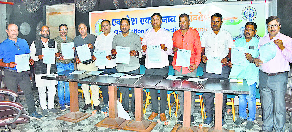 व्यवसायी संगठन जिला चेंबर की ओर से रविवार को न्यू टाउन हॉल में एक देश एक चुनाव पर संगोष्ठी आयोजित की जायेगी. सुबह 10 बजे से शुरू होने वाले कार्यक्रम में धनबाद जिले के सभी सामाजिक संगठन, एनजीओ, अधिवक्ता संघ, सभी व्यवसायी संघ आदि को आमंत्रित किया गया है. एक देश एक चुनाव पर मंथन होगा. सभी की सहभागिता के साथ एक देश एक चुनाव के पक्ष में राष्ट्रपति को पोस्टकार्ड भेजेगा. शुक्रवार को स्थानीय एक होटल में आयोजित प्रेस कांफ्रेंस में जिला महासचिव अजय नारायण लाल ने यह जानकारी दी. उन्होंने कहा कि वन नेशन, वन इलेक्शन के लागू होने से संसाधनों के साथ समय की भी बचत होगी, विकास तेजी से होगा. अलग अलग तिथियों में चुनाव होने से व्यापार प्रभावित होता है और व्यापारी पर सीधे तौर पर आर्थिक चोट पड़ती है. उन्होंने कहा धनबाद में लोकसभा का चुनाव हुआ और तीन माह बाद विधानसभा के चुनाव हुए. चुनाव में कृषि बाजार समिति में स्ट्रांग रूम बनाये गये. इस कारण तीन माह कारोबार ठप रहा.जिला वरीय उपाध्यक्ष विनोद गुप्ता ने कहा कि भारत में 1951-52 से 1967 तक राज्य विधानसभाओं और लोकसभा के लिए चुनाव एक साथ होते थे. यह चक्र टूट गया और वर्तमान में चुनाव अलग-अलग समय पर होते हैं. इसके काफी सरकारी व्यय होता है, आदर्श आचार संहिता लागू होने के कारण विकास कार्यों में बाधा भी उत्पन्न होती है. मौके पर जिला वरीय उपाध्यक्ष प्रमोद गोयल, प्रदीप सिंह, देवाशीष पाल, जिला उपाध्यक्ष मनोरंजन सिंह, विकास कन्धवे, जिला संगठन सचिव श्रवण सिन्हा, शैलेश सिंह, जिला कार्यकारिणी सदस्य अभिषेक विश्वकर्मा, कृष्णा खेतान आदि मौजूद थे.