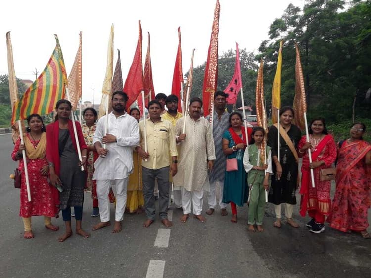 निशान यात्रा में शामिल लोग. Dhanbad News: एकादशी पर श्याम बाबा को चढ़ाये 151 निसान देव एकादशी पर रविवार को श्री श्याम मित्र मंडल श्याम दिवाने निरसा की ओर से 151 निसान यात्रा निकाली गयी. निसान यात्रा बिरला ढाल शिव मंदिर से निरसा गुरुद्धारा पहुंचा. श्याम भक्त करीब 10 किमी पदयात्रा कर मैथन संजय चौक स्थित मैथन श्याम बाबा मंदिर पहुंचे और निसान अर्पित किया. एनएच 19 के गलफरबाड़ी में भक्तों के लिए फल व शीतल जल की व्यवस्था की गयी थी. मौके पर मोनू शर्मा, कृष्णा साव, सोनू साव, संजय महतो, कन्हैया अग्रवाल, सुभाष अग्रवाल, संजय अग्रवाल, मिट्ठू तायल, राहुल अग्रवाल, पिंटू सहित अन्य मौजूद थे.