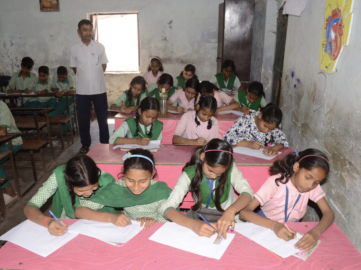 कमोबेश यही व्यवस्था जिले के अधिकांश स्कूलों में रही. इससे शिक्षकों को काफी परेशानी हुई. क्योंकि, कई ऐसे स्कूल हैं, जहां वर्ग एक से आठ तक पढ़ाई होती है. जहां शिक्षकों की भी कमी है. ऐसे में एक ही शिक्षक को कई कक्षाओं में जाकर गुरुजी ऐप के से मिले सवाल को ब्लैकबोर्ड पर उतारना संभव नहीं हुआ तो उन्हें प्रश्नों की फॉटोकॉपी करा कर देनी पड़ी. वहीं बहुत से स्कूलों में ब्लैकबोर्ड पर प्रश्न लिखे गये, जिसे कॉपी में उतारने के बाद छात्रों ने परीक्षा दी.मध्य विद्यालय हीरापुर :