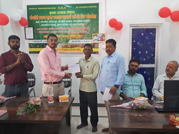 Dhanbad News: कोरकोट्टा में कृषक उत्पादक सहकारी समिति के कार्यालय का उद्घाटन Dhanbad News: तोपचांची प्रखंड कृषक उत्पादक सहकारी समिति लिमिटेड, कोरकोट्टा के कार्यालय का उद्घाटन बुधवार को रांची के पदाधिकारी अंकित सिन्हा ने किया. उन्होंने समिति से होने वाली फायदों के बारे में सदस्यों को बताया. सीइओ राजू प्रसाद ने कहा कि समिति की सदस्यता शुल्क मात्र 10 रुपये है. सौ रुपये प्रति शेयर है. एक किसान अधिक से अधिक बीस शेयर खरीद सकता है. शेयर से जितनी राशि एकत्र होगी. उतनी ही राशि सरकार अंशदान के रूप में देगी. समिति के सदस्य जमा रुपये से प्रोसेसिंग यूनिट लगा कर अपनी आमदनी बढ़ा सकते हैं. 750 किसानों को समिति में सदस्य बनाये जायेगा. फिलहाल 400 किसानों ने सदस्यता ली है. मौके पर अमित कुमार, समिति के अध्यक्ष भगवान दास प्रसाद, मुख्य कार्यपालक पदाधिकारी राजू प्रसाद, कपिल सिंह, उज्ज्वल प्रकाश, रवि शर्मा, बालेश्वर मोहली, जीतलाल मोदी, साधुलाल महतो, मो कयूम अंसारी, अनिता देवी, रोशनी देवी, लाडली देवी थे.