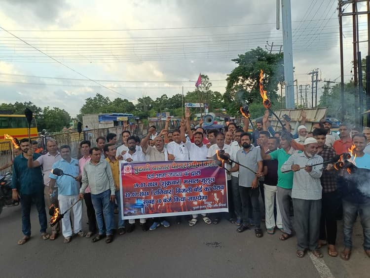 लचर विद्युत व्यवस्था के खिलाफ शुक्रवार की शाम मशाल जुलूस निकाला गया. इसका नेतृत्व पुटकी बाजार चेंबर ऑफ कॉमर्स के अध्यक्ष हीरालाल शर्मा व महासचिव मुर्तजा अंसारी ने किया. जुलूस में पुटकी, केंदुआ, लोयाबाद चेंबर ऑफ कॉमर्स से जुड़े दर्जनों व्यवसायी शामिल हुए. मशाल जुलूस पुटकी क्षेत्र का भ्रमण करते हुए पुटकी मोड़ पहुंचा. यहां नुक्कड़ सभा हुई. जुलूस के पश्चात करकेंद विद्युत आपूर्ति प्रमंडल के एसडीओ सुजीत कुमार व जेई जीवच गुप्ता चेंबर के पदाधिकारी के पास पहुंचे. आश्वस्त कराया कि अगले एक माह में विद्युत आपूर्ति को सुचारू कर दिया जाएगा. अधिकारियों के आश्वासन के पश्चात चेंबर में 20 जुलाई को विद्युत सब स्टेशन घेराव का कार्यक्रम स्थगित कर दिया. जुलूस में विकास चौधरी, शाहरुख खान, मो इम्तियाज उर्फ टीपू, राजू अंसारी, केदार प्रसाद बर्णवाल, निरंजन शर्मा, सरोज कुमार, मुकेश कुमार बर्णवाल, हुकुम चंद्र अग्रवाल, महेंद्र बर्णवाल, रविन्द्र सिंह, चांद परवेज, मो हाफिज, सदानंद वर्णवाल, बालेश्वर सोनी, बाबू भाई, बबलू बर्णवाल आदि मौजूद थे. इधर सभी तैयारी के बाद चेंबर के वरीय पदाधिकारियों द्वारा घेराव आंदोलन को स्थगित करने की घोषणा से व्यवसायियों का एक तबका नाराज दिखा.