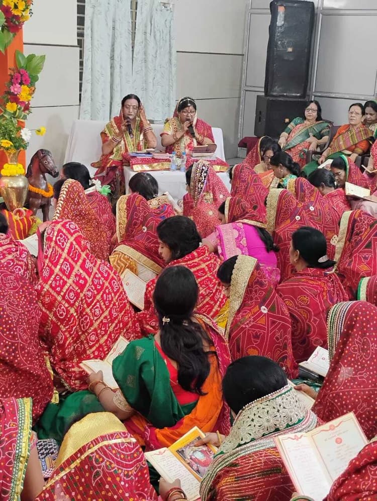 Dhanbad News: झरिया के लक्ष्मीनिया मोड़ स्थित श्री राणी सती दादी मंदिर में शनिवार से दो दिवसीय मंगसीर नवमी महोत्सव शुरू हो गया. मंगल पाठ में 151 महिलाएं शामिल हुईं. पंडित मुन्ना पांडेय ने पूजा-अर्चना की. राणी सती दादी का अलौकिक शृंगार किया गया. अखंड ज्योत जलायी गयी. सरिता जालूका व सरोज शर्मा ने मंगल पाठ किया. मंदिर को फूलों व आकर्षक लाइटिंग से सजायी गयी है. मंगल पाठ के दौरान श्रद्धालु दादी जी का जयकारे लगा रहे थे. इस दौरान ‘नारायणी म्हारी नारायणी पालने में झूले नारायणी…, दादी जी मेरे घर आयी, मैं तो झूम झूम बांटे मिठाई…, दादी जी आज थाने मंगल गाना है… आदि भजनों से लोग झूम उठे. कार्यक्रम रात आठ बजे तक चला. स्थानीय भजन मंडली ने भजन-कीर्तन प्रस्तुत किया.
