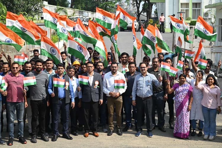 Dhanbad News: हर्ल सिंदरी यूनिट में राष्ट्रीय गीत वंदे मातरम् की 150वीं वर्षगांठ पर भव्य समारोह का आयोजन किया गया. बिजनेस यूनिट हेड गौतम माजी के नेतृत्व में हर्ल के सभी कर्मचारियों और सुरक्षा कार्यबल ने एक साथ राष्ट्रीय गीत गाये. प्रधानमंत्री नरेंद्र मोदी के उद्घाटन समारोह का लाइव प्रसारण किया गया. मौके पर कंपनी परिसर के चारों ओर राष्ट्रीय ध्वज के साथ भ्रमण किया गया.