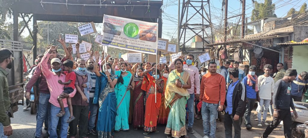 dhanbad news : प्रदूषण के खिलाफ लोयाबाद में ग्रामीणों का पैदल मार्च