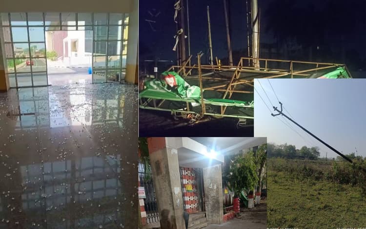 शनिवार की रात आंधी में शहरी क्षेत्र के 13 जगहों पर बिजली के पोल क्षतिग्रस्त हो गए. जेबीवीएनएल के अधिकारियों के अनुसार पुराना बाजार, मनईटांड़, कुसुम विहार, भूली, विशुनपुर, बाबूडीह, नवाडीह, पॉलिटेक्निक, गोल बिल्डिंग-बलियापुर रोड, मेमको, केंदुआ, धनसार व माड़ी गोदाम में बिजली के पोल क्षतिग्रस्त हुए. वहीं तेलीपाड़ा, एलसी रोड, बरटांड़, बरमसिया, भूदा, जेसी मल्लिक, कार्मिक नगर, भुइफोड़ मंदिर, हीरक रोड, धैया समेत अन्य इलाकों में बिजली के तारों पर पेड़ों की डाल गिरने से बिजली बाधित रही. रविवार शाम तक बिजली के तार व पोल की मरम्मत कर प्रभावित इलाकों में बिजली सप्लाई शुरू हुई.