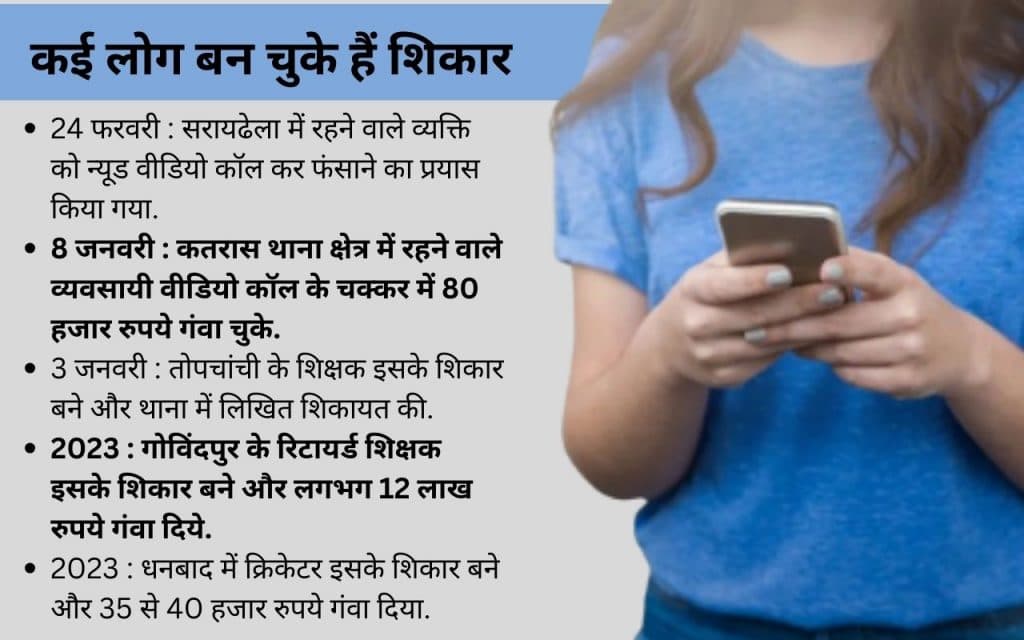 - 8 जनवरी : कतरास थाना क्षेत्र में रहने वाले व्यवसायी वीडियो कॉल के चक्कर में 80 हजार रुपये गंवा चुके