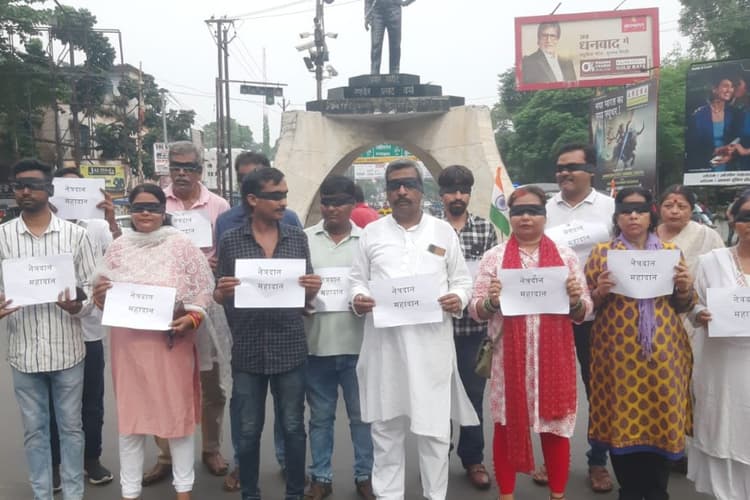 नेत्रदान बंद होने के विरोध में आंखों पर काली पट्टी बांध प्रदर्शन