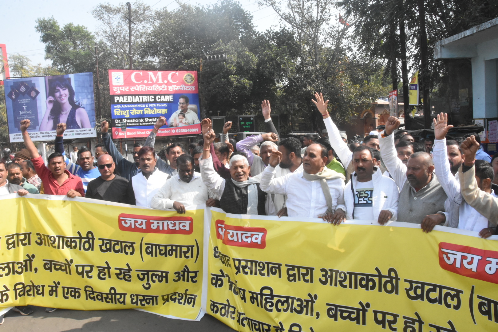 Dhanbad News : मधुबन हिलटॉप कंपनी में सांसद सीपी चौधरी समर्थकों व पूर्व झामुमो नेता कारू यादव के समर्थकों के बीच पिछले दिनों हुई हिंसक झड़प के मामले में घटना के नौवें दिन यादव महासभा ने रंधीर वर्मा चौक पर प्रदर्शन किया. महासभा ने पुलिस की कार्रवाई को एकतरफा बताया. वक्ताओं ने कहा कि नौ जनवरी को मधुबन की हिलटॉप आउटसोर्सिंग में बाउंड्रीवॉल निर्माण को लेकर झड़प हुई. इसमें कारू यादव और गिरिडीह के आजसू सांसद चंद्र प्रकाश चौधरी पर आरोप लगा है. घटना के दौरान एसडीपीओ पुरुषोत्तम सिंह ने एकतरफा कार्रवाई करते हुए कारू यादव को उनके मार्केट से गिरफ्तार करने का प्रयास किया, जिससे आक्रोशित भीड़ ने पथराव किया और एसडीपीओ घायल हो गये. इसके बाद जांच के नाम पर खटाल के हर घर को पुलिस व विरोधियों द्वारा तहस-नहश किया गया. घरों में रखे टीवी, फ्रीज व दर्जनों बाइक तोड़े गये. महिलाओं से बदसलूकी की गयी. प्रशासन के आतंक से खटाल के लोग भागने को विवश हो गये. ऐसे में खटाल के जानवर भुखमरी के कगार पर हैं. कहा कि अबुआ राज को योगी राज बनाने का प्रयास किया जा रहा है. घटना में शामिल दोषियों पर कार्रवाई हो, न की निर्दोष लोगों पर. मौके पर राघवेंद्र प्रताप यादव, राधेश्याम यादव, विशाल यादव, बिजेंदर यादव, सुधीर यादव, आरएन यादव, बैजनाथ यादव, अशोक यादव, ऋषिकांत यादव, बसंत यादव, संतोष यादव, भुट्टा यादव, सुरेंद्र यादव आदि मौजूद थे.