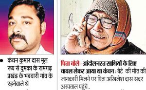 पिता बोले : आंदोलनरत साथियों के लिए चावल लेकर आया था कंचन : बेटे की मौत की जानकारी मिलने पर पिता अखिलेश दास सदर अस्पताल पहुंचे. उनका रो रोकर बुरा हाल था. उन्होंने बताया कि कंचन लगभग 10 साल पहले पारा शिक्षक बना था. उसने धरना में शामिल साथियों के लिए पैतृक गांव से चावल लेकर आया था, ताकि आंदोलन जारी रह सके.