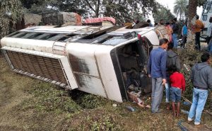 गोड्डा से दुमका आ रही मां तारा ट्रेवल्स की बस पलटी, आठ घायल