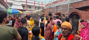 प्रतिनिधि, बासुकिनाथ बाबा बासुकिनाथधाम में सोमवार को भोलेनाथ की पूजा-अर्चना के लिए बड़ी तादाद में श्रद्धालुओं की भीड़ उमड़ी. आषाढ़ मास, शुक्ल पक्ष की पंचमी तिथि को लेकर हजारों श्रद्धालुओं की भीड़ दिनभर जुटी रही. भीड़ को नियंत्रित करने के लिए सोमवार को पुलिस बल और मंदिर के सुरक्षा गार्ड प्रवेश द्वार और निकासी द्वार पर तैनात थे. वहीं मंदिर परिसर का उत्तर दरवाजा बंद रखा गया था. श्रद्धालु संस्कार मंडप हाथी द्वार के रास्ते बाबा मंदिर में कतार से प्रवेश कर रहे थे. बताते चलें कि आषाढ़ शुक्ल पंचमी पर सोमवार को बासुकिनाथ मंदिर पूर्वाह्न तीन बजे भोर को खोला गया. इसके बाद गर्भगृह की साफ-सफाई के बाद नागेश की प्रभातकालीन पूजा की गयी. सरकारी पुजारी के द्वारा विघ्नहर्ता श्रीगणेश की अर्चना के पश्चात नंदीश्वर आदि शिवपार्षदों यथा वीरभद्र, स्वामी कार्तिक, कुबेर महाराज, कीर्ति मुख और सर्पराज की पूजा अर्चना के बाद गौरीपट में भगवती विन्दुस्वरूपा माता पार्वती समेत सांगोपांग भगवान नागेश बासुकीनाथ की षोडशोपचार विधि से पूजा की गयी. इसके बाद आम श्रद्धालुओं के लिए बाबा मंदिर को खोल दिया गया. सोमवार को दिन भर पूजा के लिए भक्तों की भीड़ अनवरत जारी रही. दिवाकालीन विश्राम पूजा तक भक्तों का जुटान अनवरत जारी रहा. विश्राम पूजा के बाद बाबा बासुकिनाथ मंदिर को विश्राम के लिए बंद कर दिया गया. संध्या वंदन के दौरान पुनः मंदिर खुलने पर श्रद्धालुओं ने एक बार फिर भोलेनाथ की पूजा-अर्चना की. मंदिर सूत्रों के अनुसार सोमवार को रात्रिकालीन शृंगार पूजा तक लगभग 45 हजार श्रद्धालुओं ने पूजा-अर्चना की. सोमवार को बासुकिनाथ मंदिर में श्रद्धालुओं ने मुंडन संस्कार, रुद्राभिषेक, ध्वजारोहण, गठबंधन, शांतिपूजन आदि विभिन्न धार्मिक अनुष्ठान संपन्न करवाया.