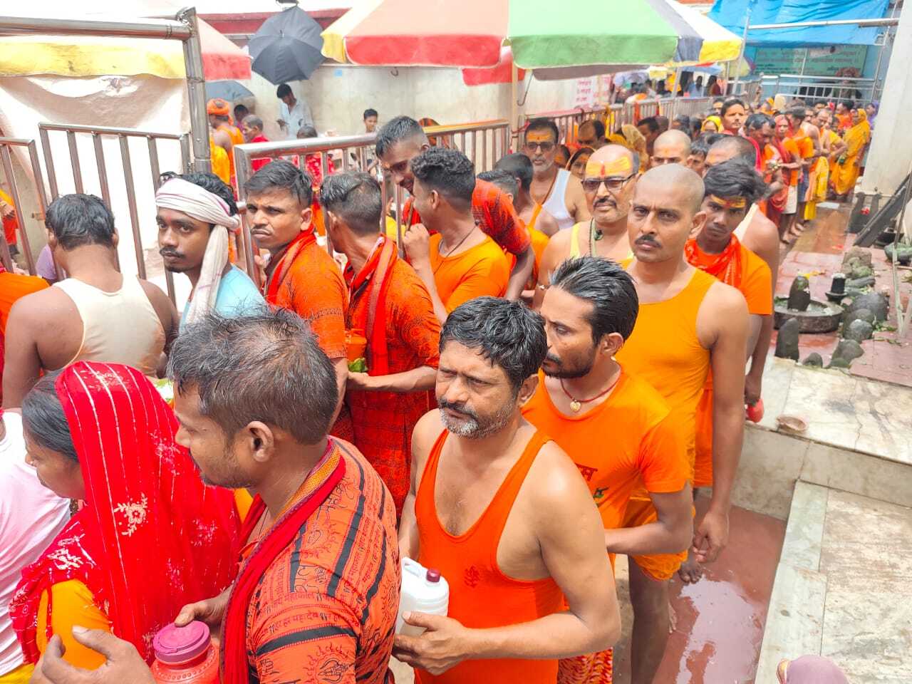 भादो मेला. 12वें दिन बासुकिनाथ में जुटी रही शिवभक्तों की भीड़, लगे जयकारे प्रतिनिधि, बासुकिनाथ भाद्रपद माह के कृष्ण पक्ष त्रयोदशी तिथि गुरुवार को भादो मेला के 12वें दिन बाबा के दरबार में कांवरियों की भीड़ जुटी थी. श्रद्धालुओं ने बाबा बासुकिनाथ का विधिवत स्पर्श पूजा कर मंगलकामना की. मंदिर में लगातार भक्तों की भीड़ पहुंच रही है. जलार्पण करने के साथ-साथ श्रद्धालु धार्मिक अनुष्ठान भी करा रहे हैं. त्रयोदशी पर कांवरिया मंदिर में गठबंधन पूजा, परिवार में सुख-शांति के लिए करा रहे हैं. बाबा को गंगाजल अर्पित करने और उनका आशीर्वाद लेने के लिए दूर-दूर से भक्त यहां पहुंच रहे हैं. मंदिर प्रबंधन के अनुसार इस तिथि पर 53 हजार कांवरियों ने जलाभिषेक किया. सुबह तीन बजे से श्रद्धालु कतारबद्ध होकर भगवान नागेश का जलाभिषेक कर रहे थे. संध्या पांच बजे बाबा की विश्राम पूजा के लिए कांवरियों का जलार्पण और पूजा रोक दी गयी. इस बीच बाबा नागेश की षोडशोपचार पूजन के बाद क्षणिक विश्राम के लिए शिव मंदिर के कपाट बंद कर दिये गये. इस दौरान श्रद्धालुओं की पूजा व जलाभिषेक बंद रहे. विश्राम पूजन के बाद मंदिर के कपाट पुनः खोले गये और कांवरियों ने फिर से मंदिर में जलार्पण करना शुरू किया, जो शृंगार पूजा तक लगातार जारी रही. कतारबद्ध होकर महिला-पुरुष कांवरियों ने भोलेनाथ की पूजा कर सुख-समृद्धि की कामना की. कांवरियों की कतार शिवगंगा घाट, क्यू कॉम्प्लेक्स, फलाहारी धर्मशाला, संस्कार मंडप होते हुए मंदिर प्रांगण में प्रवेश किया. भक्तों ने स्पर्श पूजा के बाद मंदिर प्रांगण में भोलेनाथ की आरती भी की. मंदिर प्रशासन ने भक्तों की सुविधा के लिए कतार व्यवस्था, शीघ्र दर्शनम काउंटर और सुरक्षा के पुख्ता इंतजाम किये हैं. भादो मेले में सीसीटीवी की मदद से अधिकारी मंदिर एवं मेला क्षेत्र पर नजर रखे थे. 646 कांवरियों ने किया शीघ्रदर्शनम शीघ्रदर्शनम व्यवस्था के तहत भादो मास की त्रयोदशी तिथि को 646 टोकन बिके. श्रद्धालु मंदिर कार्यालय में 300 रुपये का रसीद लेकर शीघ्रदर्शनम गेट से मंदिर गर्भगृह में सुलभ जलार्पण किया. इस व्यवस्था से मंदिर प्रबंधन को एक लाख 93 हजार 800 रुपये की आमदनी प्राप्त हुई. मंदिर सिंह द्वार से शीघ्रदर्शनम के श्रद्धालु मंदिर प्रांगण स्थित विशेष द्वार से मंदिर गर्भगृह में प्रवेश कर जलार्पण करते है. मंदिर प्रभारी सह बीडीओ कुंदन भगत, पुलिस निरीक्षक श्यामानंद मंडल कंट्रोल रूम से सीसीटीवी के मदद से मंदिर व मेला क्षेत्र की गतिविधियों पर नजर बनाये रखा.