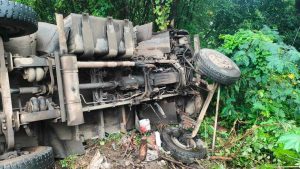 हादसा : गड्ढे में अनियंत्रित होकर खाद लदा ट्रक पलटा