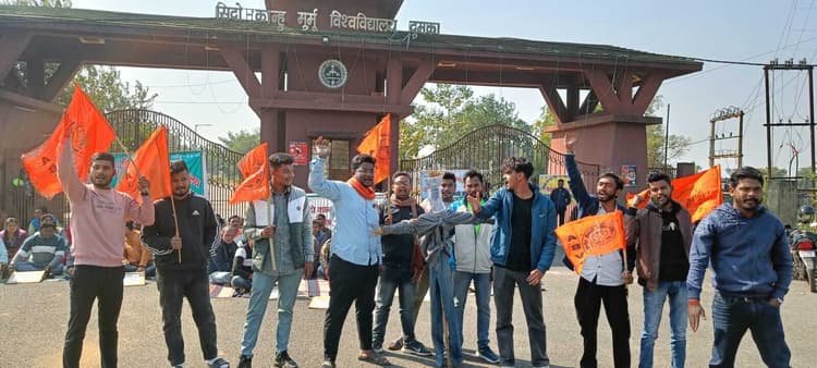 संवाददाता, दुमका विश्वविद्यालय में जारी तालाबंदी आंदोलन के चलते शनिवार को अखिल भारतीय विद्यार्थी परिषद (अभाविप) की नगर इकाई ने कुलपति का पुतला दहन किया. अभाविप नेताओं ने कहा कि तालाबंदी के कारण विश्वविद्यालय और महाविद्यालय परिसरों में हजारों छात्रों को भारी समस्याओं का सामना करना पड़ रहा है. वहीं, शिक्षकेतर कर्मचारियों को सातवें वेतनमान का लाभ नहीं मिलने और उनकी अन्य मांगों के पूरा न होने से विभिन्न कार्य बाधित हैं. यह स्थिति विश्वविद्यालय प्रशासन की नाकामी और सरकार की उदासीनता को दर्शाती है. क्षेत्रीय जनजातीय कार्य प्रमुख मनोज सोरेन ने कहा कि, पिछले 19-20 दिनों से विश्वविद्यालय और महाविद्यालय के कैंपस बंद पड़े हैं. इस दौरान विश्वविद्यालय प्रशासन पूरी तरह से निष्क्रिय बना हुआ है. उन्होंने कहा कि, छात्रों के भविष्य को दांव पर लगाया जा रहा है. कुलपति को चाहिए कि वे तुरंत संजीदगी दिखाते हुए कैंपस को खोलने की दिशा में ठोस कदम उठाएं, जिससे नियमित कक्षाएं शुरू हो सके. श्री सोरेन ने चेतावनी दी कि यदि इन मांगों को शीघ्र पूरा नहीं किया गया, तो अभाविप पूरे संताल परगना क्षेत्र के छात्रों को साथ लेकर आंदोलन को और अधिक तीव्र करेगी. इस मौके पर विभाग संगठन मंत्री हिमांशु दुबे, नगर मंत्री अभिषेक गुप्ता, कॉलेज अध्यक्ष अमन कुमार, अभिषेक पाल, मनीष मंडल, सनत पंडित, प्रशांत रक्षित, आयुष सिन्हा, और प्रिंस कुमार सहित कई कार्यकर्ता उपस्थित रहे.