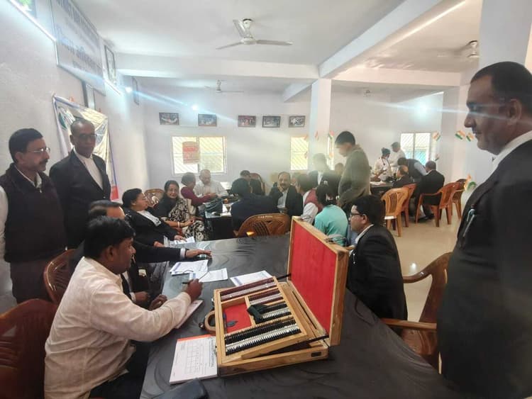 प्रतिनिधि, दुमका कोर्ट भारती अस्पताल के द्वारा शनिवार को दुमका कोर्ट परिसर में निःशुल्क स्वास्थ्य, दंत एवं नेत्र जांच शिविर का आयोजन किया गया. दुमका अधिवक्ता संघ के सचिव राकेश यादव की देखरेख में आयोजित शिविर में जेनरल फिजिशियन डाॅ डी गांगुली, डेंटल सर्जन डाॅ प्रसेनजीत दे और नेत्र रोग विशेषज्ञ डाॅ निर्मल कुमार ने अधिवक्ताओं व अन्य लोगों के स्वास्थ्य की जांच की गयी. यह जानकारी भारती अस्पताल की प्रबंध निदेशक अमिता रक्षित ने दी. इस अवसर पर निःशुल्क स्वास्थ्य, दंत एवं नेत्र जांच शिविर में काफी संख्या में अधिवक्ताओं ने अपने स्वास्थ्य की जांच करायी. साथ ही अधिवक्ताओं एवं अन्य लोगों ने डॉक्टरों द्वारा दिए गए परामर्श पर भी ध्यान दिया.
