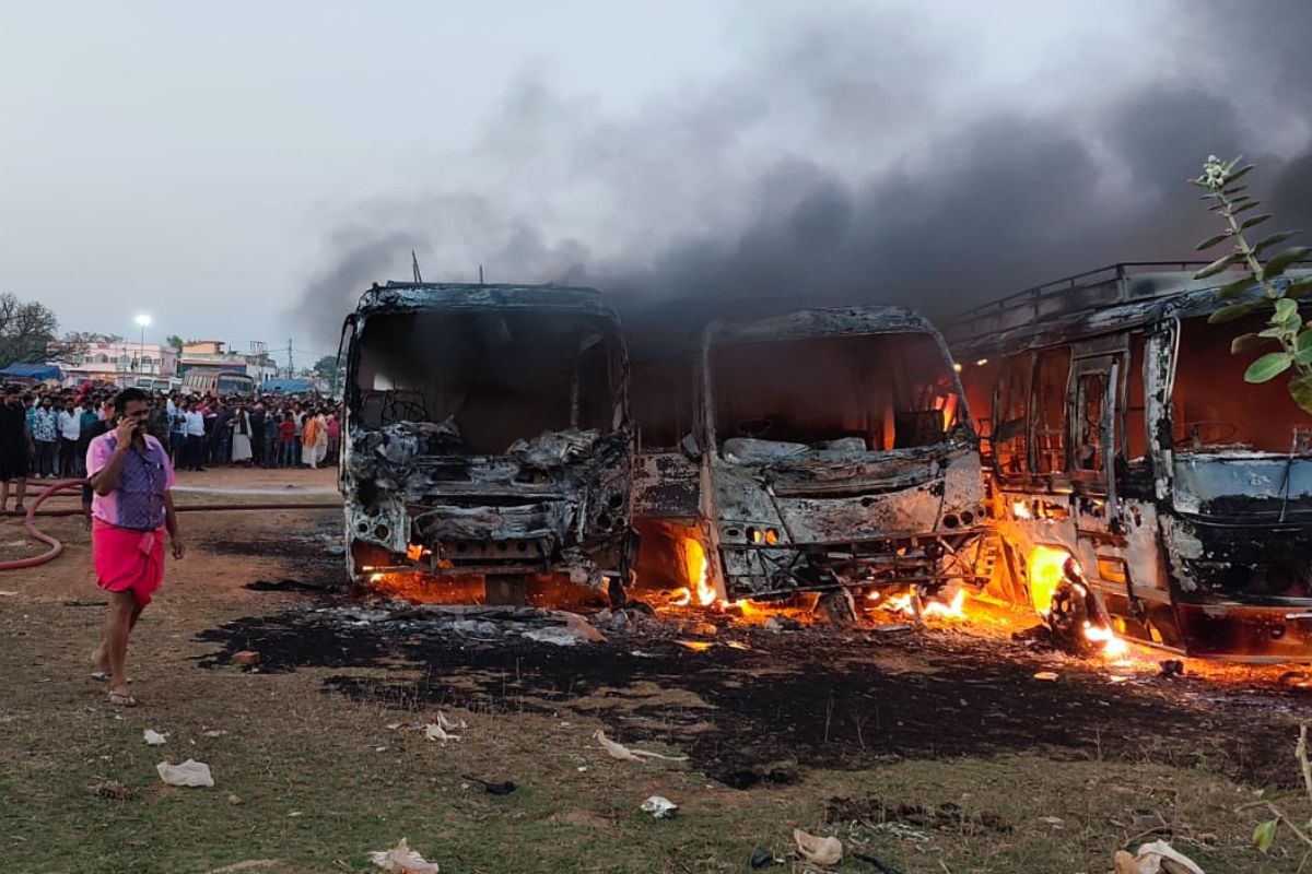 बासुकिनाथ (दुमका), आनंद जायसवाल-जरमुंडी थाना क्षेत्र के बासुकिनाथ बस स्टैंड मैदान में खड़ी पांच पैसेंजर बसें जलकर खाक हो गयीं. करीब एक करोड़ से अधिक की संपत्ति का नुकसान हो गया. पागल बाबा बस मालिक मोहनानंद झा और संजीव झा ने बताया कि दो महीने पहले खरीदी गयी एक नयी एसी बस सहित तीन गाड़ी जलकर खाक हो गयी. अजीत रोडवेज के मालिक मोनू झा ने बताया कि उनकी दो पैसेंजर बसें जल गयी हैं. इस तरह कुल पांच बसें जलकर खाक हो गयीं. आग लगने का कारण पता नहीं चल पाया है. सभी बसें एक ही जगह खड़ी थीं. काफी मशक्कत के बाद आग पर काबू पाया गया.