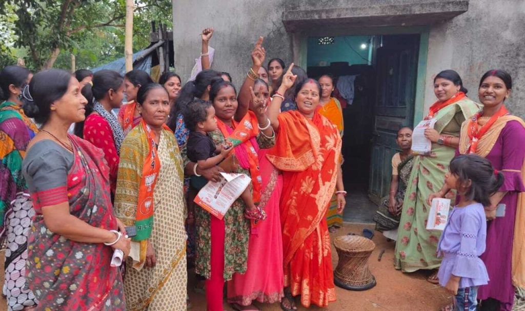 जनसंपर्क करती भाजपा महिला मोर्चा के महामंत्री मनोरमा देवी व अन्य