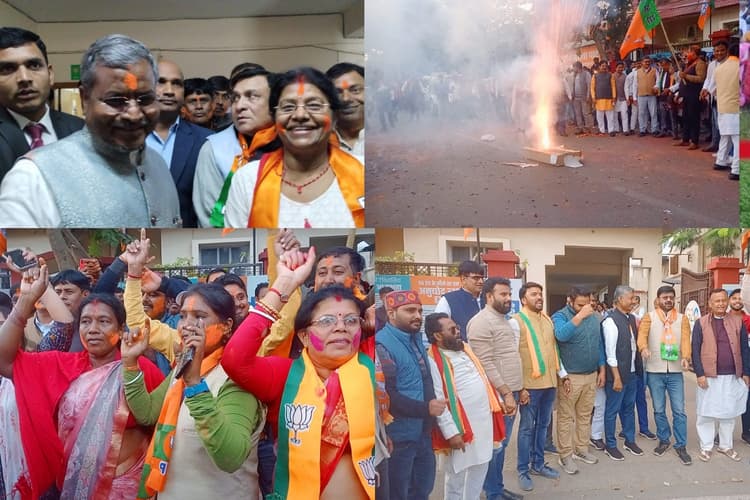 जामा प्रतिनिधि के मुताबिक जामा चौक में सोमवार को भाजपा प्रखंड अध्यक्ष राजू प्रसाद दर्वे की अगुआई में जश्न मनाया गया. मौके पर भाजपा नेता सुरेश मुर्मू ने कहा कि मोदी जी के गारंटी को स्वीकार जनता ने किया. मौके पर बिरेंद्र साव, इंद्रकांत यादव, संतोष पुजहर, कालेश्वर लायक, हराधन मरीक, देवेंद्र मरीक, दुर्योधन राय, बिशु टुडू, सिंकदर दर्वे, रामयश मांझी, धन्नजय यादव आदि शामिल थे. काठीकुंड प्रतिनिधि के मुताबिक गोपीकांदर प्रखंड के खरौनी बाजार में भाजपाइयों द्वारा जुलूस निकाला गया. भाजपा के वरिष्ठ नेता सत्य शिक्षानंद मुर्मू के नेतृत्व में खरौनी बाजार चौक पर तीनों राज्यों में पूर्ण बहुमत की खुशी में भाजपा कार्यकर्ताओं द्वारा मिठाई बांटी गयी. पटाखा फोड़ कर खुशी का इजहार किया गया. श्री मुर्मू ने कहा कि मोदी है तो सब मुमकिन है. कहा कि अब वह दिन दूर नहीं जब देश के सभी राज्यों में भाजपा व समर्थित दलों की सरकार होगी. परिणाम प्रधानमंत्री नरेंद्र मोदी द्वारा देश हित में किये जाने वाले कार्यों की गारंटी का है. मौके पर एसटी मोर्चा के मंडल अध्यक्ष अजय हासदा, सुशील हेंब्रम, होरेन पाल, अकलू राय, कंचन दास, सुधीर दास, सुभाष दास, राजेश किस्कू, कैलाश मंडल, दिलीप पाल, अनिल मंडल, निरंजन पंडित, राजकुमार पाल आदि मौजूद थे.