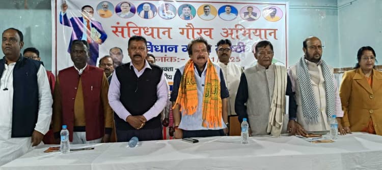 भाजपा के संविधान गौरव अभियान के तहत आयोजित गोष्ठी में पहुंचे केंद्रीय राज्यमंत्री प्रतिनिधि, दुमका भारतीय जनता पार्टी द्वारा संविधान गौरव अभियान के तहत एक संविधान गोष्ठी का आयोजन सोमवार को दुमका के श्री अग्रसेन भवन में किया गया. इस कार्यक्रम की अध्यक्षता जिला अध्यक्ष गौरवकांत ने की, और इसमें मुख्य वक्ता के रूप में केंद्रीय राज्यमंत्री प्रोफेसर एसपी बघेल उपस्थित रहे. श्री बघेल ने अपने संबोधन में कहा कि संविधान केवल एक दस्तावेज नहीं है, बल्कि यह हमारे लोकतंत्र की आत्मा और राष्ट्र के विकास का मुख्य आधार है. संविधान बचाओ के नाम पर समाज में विभाजन व तुष्टिकरण की राजनीति कर रहे कुछ दल मंत्री श्री बघेल ने संविधान निर्माण में बाबा साहब भीमराव आंबेडकर के योगदान को नमन करते हुए कहा कि प्रधानमंत्री नरेंद्र मोदी के नेतृत्व में भाजपा सरकार संविधान की मूल भावना को सशक्त बनाने और हर नागरिक को समान अवसर प्रदान करने के लिए प्रतिबद्ध है. उन्होंने यह भी कहा कि कुछ राजनीतिक दल संविधान का नाम लेकर समाज में विभाजन और तुष्टिकरण की राजनीति कर रहे हैं. लेकिन भाजपा संविधान की रक्षा करने और इसे हर नागरिक तक पहुंचाने के लिए प्रतिबद्ध है. विधायक और पूर्व सांसद ने रखे अपने विचार जरमुंडी के विधायक देवेंद्र कुंवर ने कहा कि संविधान भारत की आत्मा है और भाजपा ही एकमात्र पार्टी है जो बाबा साहब आंबेडकर के सपनों को साकार कर रही है. उन्होंने कांग्रेस और झारखंड मुक्ति मोर्चा (झामुमो) की सरकारों पर आरोप लगाया कि वे अपने स्वार्थ के लिए संविधान की भावना को दबा रही हैं. पूर्व सांसद सुनील सोरेन ने झारखंड सरकार पर संविधान और लोकतंत्र को कमजोर करने का आरोप लगाते हुए कहा कि भ्रष्टाचार, तुष्टिकरण और परिवारवाद ने झारखंड को गर्त में डाल दिया है. उन्होंने भाजपा को संविधान की रक्षा और संताल परगना के विकास का एकमात्र विकल्प बताया. पूर्व प्रदेश अध्यक्ष अभयकांत प्रसाद ने कहा कि संविधान ने हमें समानता और न्याय का अधिकार दिया है. लेकिन झामुमो और कांग्रेस की सरकारें तुष्टिकरण की राजनीति कर संविधान की मूल भावना के साथ खिलवाड़ कर रही हैं. उन्होंने कहा कि भाजपा का संकल्प है कि बाबा साहब आंबेडकर के विचारों को हर घर तक पहुंचाकर उनके सपनों का भारत बनाया जाये. गोष्ठी में उपस्थित सभी कार्यकर्ताओं ने संविधान की गरिमा बनाए रखने और राष्ट्रहित में भाजपा के मिशन को सशक्त बनाने का संकल्प लिया. वक्ताओं ने संविधान के प्रति अपनी आस्था व्यक्त करते हुए इसे हर नागरिक की स्वतंत्रता, समानता और न्याय का आधार बताया. मीडिया सह प्रभारी नवल किस्कू ने जानकारी देते हुए बताया कि इस कार्यक्रम में प्रदेश कार्यसमिति सदस्य अमरेंद्र सिंह मुन्ना, निवास 