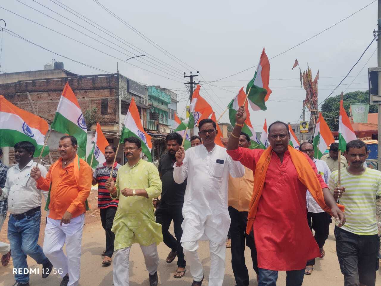 प्रभात खबर टोली, दुमका. भारतीय जनता पार्टी के राष्ट्रव्यापी “हर घर तिरंगा-तिरंगा यात्रा 2025 ” अभियान के तहत मंगलवार को जिले के विभिन्न मंडलों में तिरंगा यात्राएं निकाली गयी. रामगढ़ में मंडल अध्यक्ष नवल किशोर मांझी के नेतृत्व में जोगिया से निकली तिरंगा यात्रा रामगढ़ बाजार में संपन्न हुई. यात्रा में शामिल लोगों ने हाथों में राष्ट्रीय ध्वज लेकर भारत माता की जय, वंदे मातरम जैसे देशभक्ति नारों के साथ बाजार तक पदयात्रा की. समापन पर भाजपा अनुसूचित जनजाति मोर्चा के जिलाध्यक्ष रमेश मुर्मू ने तिरंगे को स्वतंत्रता, एकता और अखंडता का प्रतीक बताते हुए स्वतंत्रता दिवस पर अपने घरों में तिरंगा लगाने का आह्वान किया. सदर मंडल की तिरंगा यात्रा मंडल अध्यक्ष मनिलाल गृही के नेतृत्व में विजयपुर चौक से दुधानी चौक होते हुए कुरूवा चौक (रसिकपुर) तक निकाली गयी, जहां इसका समापन हुआ. यात्रा के दौरान लोगों से अपने घरों में तिरंगा लगाने की अपील की गयी. इस अवसर पर जिला उपाध्यक्ष पिंटू साह, विमल मरांडी, मंडल महामंत्री बैजनाथ यादव, महिला मोर्चा की सदस्य टिंकू गण, संतोष मल्लाह, कृष्ण मुरारी सुमन, मीडिया प्रभारी कुश कुमार पाल, रवि राउत, विक्की गुप्ता, राम कुमार साह, प्रेम राज मंडल, अजय साह, राजू दत्ता, दयामय दत्ता, विद्या कुमार गुप्ता, तवेशा पल्लवी समेत दर्जनों कार्यकर्ता उपस्थित रहे. काठीकुण्ड मंडल में मंडल अध्यक्ष अभिजीत सुमन के नेतृत्व में बाजार से गांधी चौक तक तिरंगा यात्रा निकाली गई. यात्रा के दौरान भारत माता की जय, हिंदुस्तान जिंदाबाद और वंदे मातरम के जयकारे लगाए गए. वक्ताओं ने कहा कि इस अभियान का उद्देश्य राष्ट्रभक्ति, अखंडता और तिरंगे के प्रति सम्मान का भाव जागृत करना है. कार्यक्रम में मंडल महामंत्री गणेश राय, पूर्व मंडल अध्यक्ष लालचंद पाल, मनोज नाग, उपाध्यक्ष जगतनारायण राय, राजू दत्ता, शम्भू पाल, शशिकांत साह, दुर्गा भगत, आस्तिक गण, समवेल मुर्मू, ऐल्फेंन सोरेन, मुनीलाल भंडारी, नरेश भंडारी, मयूरध्वज मंडल, देवानी राय, जगदीश सिंह, डीजेन मोदी, देवकांत राय, जय प्रकाश मंडल सहित सैकड़ों कार्यकर्ता शामिल हुए.
