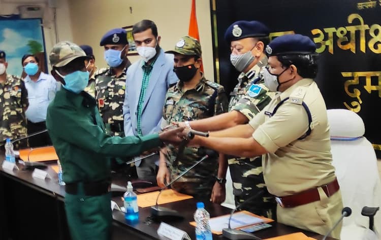 प्रतिबंधित नक्सली संगठन भाकपा माओवादी (The banned Naxalite organization CPI Maoist) के सक्रिय सदस्य गंगा प्रसाद राय ने आज दुमका पुलिस (dumka police) के समक्ष देसी राइफल के साथ सरेंडर कर दिया. बताया जाता है कि वह झारखंड पुलिस (jharkhand police) की सरेंडर पॉलिसी से प्रभावित था. समाज की मुख्यधारा में जुड़ने को लेकर उसने आत्मसमर्पण किया.