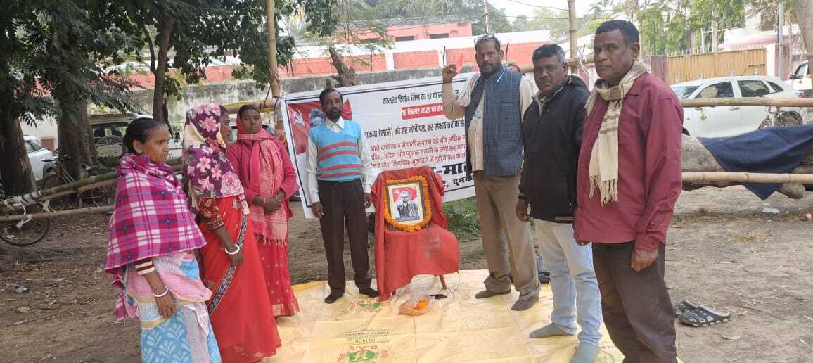 प्रतिनिधि, दुमका भाकपा–माले ने पार्टी के पूर्व महासचिव विनोद मिश्र की 27वीं स्मृति दिवस पर उन्हें श्रद्धांजलि अर्पित करते हुए इस दिन को संकल्प दिवस के रूप में मनाया. आयोजन दुमका स्थित पुराने समाहरणालय परिसर में किया गया, जहां पार्टी कार्यकर्ताओं ने उनकी तस्वीर पर पुष्प अर्पित कर नारे लगाये. अध्यक्षता सुभाषचंद्र मंडल ने की, जबकि संचालन भुण्डा बास्की ने किया. जिला संयोजक एवं राज्य कमेटी सदस्य भुण्डा बास्की ने कहा कि विनोद मिश्र ने 1970 के दशक की चुनौतियों और 1990 के दशक में संघ–भाजपा के खतरों के बावजूद पार्टी को मजबूत व संगठित बनाया. उन्होंने पार्टी को संकीर्णता और कट्टरता से निकालकर व्यापक जनसंघर्षों की ओर अग्रसर किया. सुभाषचंद्र मंडल ने कहा कि आज संविधान, लोकतंत्र और प्राकृतिक संसाधनों पर खतरा है. उन्होंने कार्यकर्ताओं से विनोद मिश्र के विचारों को आत्मसात कर संगठन को मजबूत करने का आह्वान किया. मौके पर बैकुंठ शर्मा, चंडीचरण महतो, भुटकी रानी, कियामुनी मरांडी, प्रीति देवी आदि मौजूद थे.