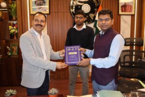 रानीश्वर. प्रखंड के कन्या मध्य विद्यालय रघुनाथपुर के प्रधानाध्यापक विश्वनाथ गोराई को शनिवार को उपायुक्त अभिजीत सिन्हा ने कार्यालय कक्ष में सम्मानित किया. प्रधानाध्यापक श्री गोराई ने बताया कि विद्यालय को एफआइसीसीआइ द्वारा आयोजित राइज एक्सीलेंस अवार्ड 2025 में एक्सीलेंस इन फ्यूचर रेडी स्किल श्रेणी में द्वितीय स्थान प्राप्त हुआ था. प्रधानाध्यापक विश्वनाथ गोराई के नेतृत्व में विद्यालय ने देशभर के एक हजार से अधिक विद्यालयों के बीच उत्कृष्ट प्रदर्शन किया था. श्री गोराई ने बताया कि उसी सिलसिले में उपायुक्त के हाथों सम्मानित किया गया.
