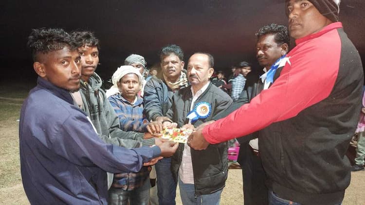 प्रतिनिधि, जामा जामा प्रखंड के बेदिया पंचायत अंतर्गत कठनारा गांव के मैदान में दो दिवसीय फुटबॉल टूर्नामेंट का आयोजन किया गया. फाइनल मुकाबले का शुभारंभ झामुमो प्रखंड सचिव सत्तार खां ने खिलाड़ियों से परिचय प्राप्त कर किया. फाइनल मुकाबले में दोंदिया बयार एवं बी बॉय हिजला टीम के बीच टक्कर हुई. दोनों टीमें निर्धारित समय तक कोई गोल नहीं कर सकी. पेनाल्टी शूट आउट में दोंदिया बयार की टीम ने 4-3 से जीत दर्ज की, जिसमें विजेता टीम को 10 हजार रुपये व उपविजेता टीम को सात हजार रुपये नकद देकर पुरस्कृत किया गया. तीसरे एवं चौथे स्थान पर रही टीम को 3-3 हजार रुपये नकद देकर पुरस्कृत किया गया. मौके पर पंचायत समिति सदस्य मीरा देवी, ऐनुल अंसारी, निर्मल बेसरा, बोदिलाल मरांडी, लुखिराम हांसदा,सोम मरांडी, देबू राय, मनीष मुर्मू, रामसुंदर मरांडी, स्टेफन मुर्मू, देवेंद्र राय आदि मौजूद थे.