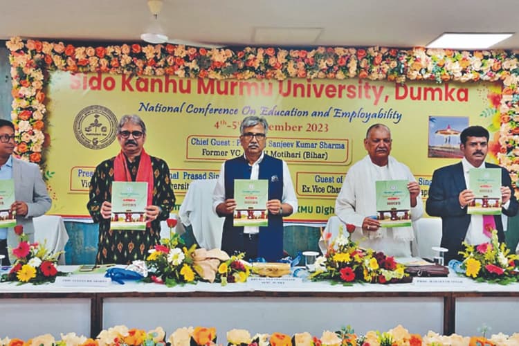 दुमका : एसकेएमयू में शनिवार को एजुकेशन एंड इम्प्लॉयबिलिटी पर दो दिवसीय नेशनल कॉन्फ्रेंस शुरू हो गया. विश्वविद्यालय कैंपस में स्थित स्मारक टिल्हा पर वीर सिदो-कान्हू की प्रतिमा पर माल्यार्पण व कान्फ्रेंस हॉल में कुलपति व आगत अतिथियों द्वारा दीप प्रज्वलन के साथ शुरू हुआ. मुख्य अतिथि इंडियन पॉलिटिकल साइंस एसोसिएशन के जेनरल सेक्रेटरी और महात्मा गांधी सेंट्रल यूनिवर्सिटी मोतिहारी के पूर्व कुलपति प्रो डॉ संजीव कुमार शर्मा ने अपना वक्तव्य में आधुनिक शिक्षा प्रणाली में कई विरोधाभास होने की बात कहते हुए सामाजिक और पारिवारिक स्तर पर छात्रों की प्रतिभा को पहचानते हुए उसे बढ़ावा देना की बात कही. उन्होंने अपने वक्तव्य में आधुनिक शिक्षा व्यवस्था को भारतीय पारंपरिक शिक्षा व्यवस्था से जोड़ने की वकालत की और कहा कि शिक्षा व्यवस्था को ऐसी बनाने की जरूरत है जो बच्चों को श्रेष्ठ नागरिक बनाये ताकि श्रेष्ठ राष्ट्र का निर्माण हो सकें. डॉ हरिकेश सिंह ने कहा कि अगर किसी छात्र ने अभिवृत्ति, स्किल एवं ज्ञान प्राप्त कर लिया तो उसे रोजगार पाने से कोई नहीं रोक सकता. उन्होंने अपने वक्तव्य में आत्म योग, ज्ञानयोग, कर्मयोग और सहयोग के बारे में विस्तार से बात की. अध्यक्षीय भाषण में विश्वविद्यालय के कुलपति प्रो डॉ बिमल प्रसाद सिंह ने स्किल एडुकेशन को बढ़ावा देने का बात करते हुए कहा कि शिक्षा ऐसा होना चाहिए जो रोजगार के अवसर उपलब्ध कराये. इस कॉन्फ्रेंस के उद्घाटन समारोह के अंत में विश्वविद्यालय के कुलसचिव डॉ संजय कुमार सिन्हा ने धन्यवाद ज्ञापन किया. इस दौरान मुख्य अतिथि डॉ संजीव कुमार शर्मा ने विश्वविद्यालय के प्रभारी कुलपति प्रो डॉ बिमल प्रसाद सिंह को अपना कुछ स्वलिखित पुस्तकें भेट की और फिर मंचासीन सभी अतिथियों ने कॉन्फ्रेंस का सोविनियर का अनावरण किया. इससे पूर्व कॉन्फ्रेंस के सचिव डॉ संजीव कुमार सिन्हा ने विषय प्रवेश कराया और अपने अभिभाषण में शिक्षा को रोजगार को महत्वपूर्ण कारक बताया. कहा नारायण मूर्ति, धीरूभाई अम्बानी जैसे व्यक्तियों से प्रेरणा लेने की आवश्यकता है.