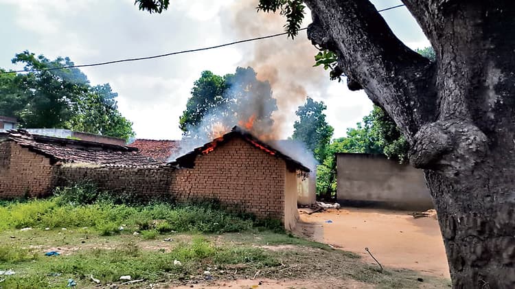 आक्रोशित ग्रामीणों ने आरोपी का घर फूंका