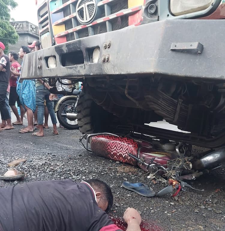 दुमका. दुमका-रामपुरहाट मुख्य मार्ग पर एनएच 114 ए में शिकारीपाड़ा थाना क्षेत्र के सरसडंगाल गांव के समीप एक बाइक सवार की हाइवा से टकरा जाने से मौत घटनास्थल पर ही हो गयी. मिली जानकारी के अनुसार बाइक सवार पश्चिम बंगाल के रामपुरहाट का रहने वाला है. उनका नाम गोपाल है. प्रतिदिन की भांति रोज टिकट बेचने के लिए वह इस क्षेत्र में आता था और टिकट बेचकर वापस चला जाता था. शनिवार को भी वह टिकट बेचने के बाद वापस घर जा रहा था. इसी बीच विपरीत दिशा से आ रही तेज रफ्तार हाइवा से उसके बाइक की सीधी टक्कर हो गयी और बाइक सवार की घटनास्थल पर मौत हो गयी. मौके पर पहुंची पुलिस ने शव को कब्जे में ले लिया है. शाम हो जाने की वजह से शव का पोस्टमार्टम अब रविवार को कराये जाने की संभावना है.
