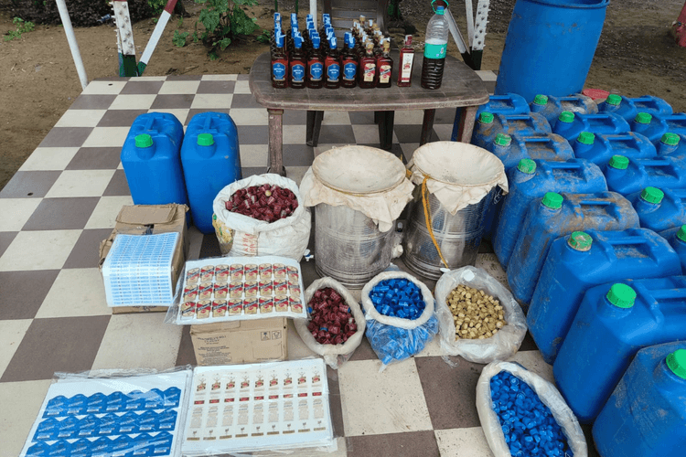 इसके बाद पुलिस ने मंगला देहरी के घर की घेराबंदी करते हुए छापामारी की और मौके से एक व्यक्ति को पकड़ा. पकड़े गए आरोपी ने नाम पूछने पर अपना नाम मंगला देहरी उम्र करीब 40 वर्ष पिता लखना देहरी बताया. पुलिस को मंगला देहरी के घर से नकली शराब की बोत्तलें, विभिन्न शराब के ब्राण्ड का स्टीकर, ढक्कन, होलोग्राम, दो सिन्टेक्स, स्त्रीट का जारकींग अन्य शराब बनाने की सामाग्री को भारी मात्रा में जब्त किया गया है.