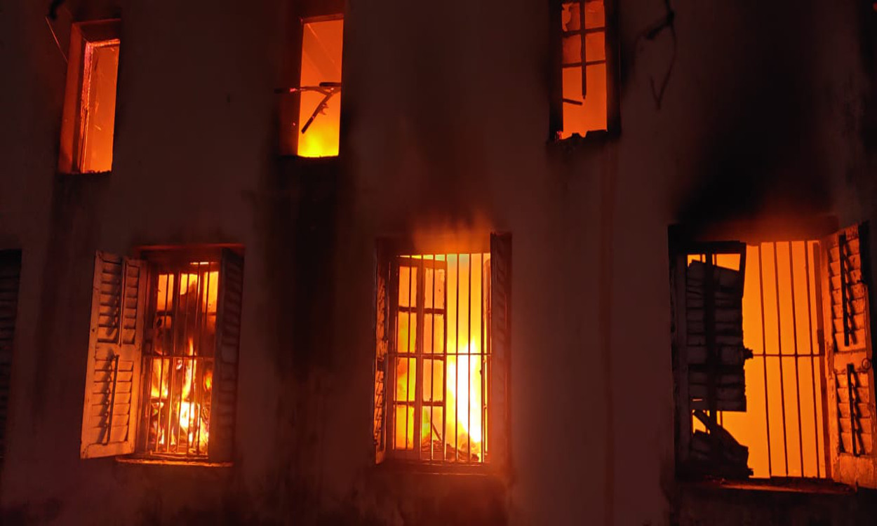 Jharkhand news, Dumla news, दुमका : दुमका के अनुमंडल पदाधिकारी के पुराने कार्यालय सह कोर्ट भवन में रविवार की शाम शरारती तत्वों ने आग लगा दी. आग जब फैल गयी और उसका धुंआ वीर कुंवर सिंह चौक तक पहुंच गया तब आसपास के लोगों ने इसकी सूचना फायर ब्रिगेड और पुलिस को दी. सूचना मिलते ही फायर ब्रिगेड के कर्मी दमकल के साथ मौके पर पहुंचे और आग को बुझाने का काम शुरू किया. लेकिन, कोर्ट रूम के दरवाजों के बंद होने के कारण आग बुझाने में कठिनाई आ रही थी. इसके बाद दरवाजों के तालों और आधे जल गये दरवाजों को तोड़ कर दो दमकल से अग्निशमनकर्मियों ने आग पर काबू पाने का प्रयास तेज कर दिया.