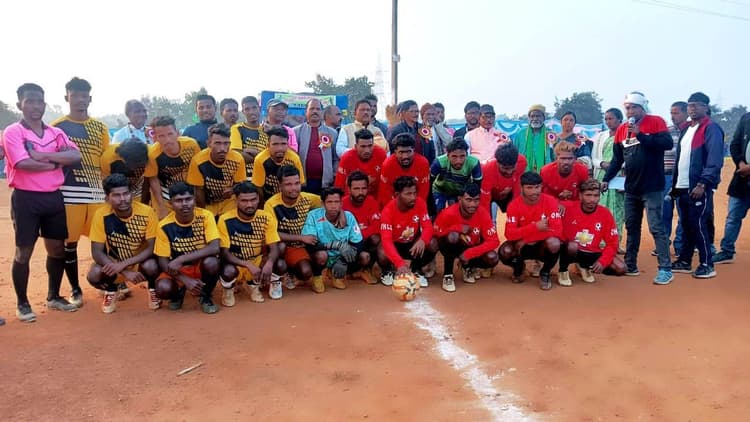 रामगढ. वाइबीसी ककनी-जवारी की ओर से आयोजित दो दिवसीय फुटबॉल प्रतियोगिता का फाइनल मैच बुधवार को खेला गया. मुख्य अतिथि फुटबाल के पूर्व खिलाड़ी ब्रेन्टुस किस्कू, विशिष्ट अतिथि झामुमो के प्रखंड अध्यक्ष शिवलाल मरांडी तथा झामुमो के केंद्रीय समिति सदस्य छोटेलाल मंडल थे. अतिथियों के साथ महुबना पंचायत के मुखिया संतोष किस्कू, अमडापहाडी मुखिया कालीचरण देहरी तथा झामुमो नेता सुशील मुर्मू ने खिलाड़ियों से परिचय प्राप्त किया. फाइनल में हेंब्रम स्टार पिंडारी ने पेनल्टी शूटआउट में चार के मुकाबले पांच गोल से हरा दिया व चैंपियन बना. तीसरे स्थान पर दिल की धड़कन क्लब साधुडीह एवं चतुर्थ स्थान पर भाई-भाई टीम रही. विजेता टीम को ब्रेन्टुस किस्कू, शिवलाल मराण्डी एवं छोटेलाल मंडल द्वारा संयुक्त रूप से 30 हजार रुपये की राशि दी गयी. उपविजेता एफसी राॅयल रपाज टीम को महुबना मुखिया संतोष किस्कू, झामुमो पंचायत अध्यक्ष सुशील मुर्मू, हिम्मत लाल हेम्ब्रम तथा प्रेम चंद्र मंडल द्वारा संयुक्त रूप से 20 हजार रुपये दिया गया. तीसरे व चौथे स्थान पर रहने वाली टीमों को सात-सात हजार रुपये आयोजन कमेटी के अरविंद टुडू, अनिल टुडू, मानु मुर्मू, राजेंद्र मांझी और सुखलाल किस्कू द्वारा दिया गया. इस अवसर पर समिति के अनिल मुर्मू, नरेश हेंब्रम, बाबूराम मरांडी, सुलेमान बास्की, जनसंघ मंडल, अरुण मंडल,नेशनल फुटबॉल प्लेयर प्लेयर सुदीन बेसरा, जीवन हेंब्रम आदि थे.