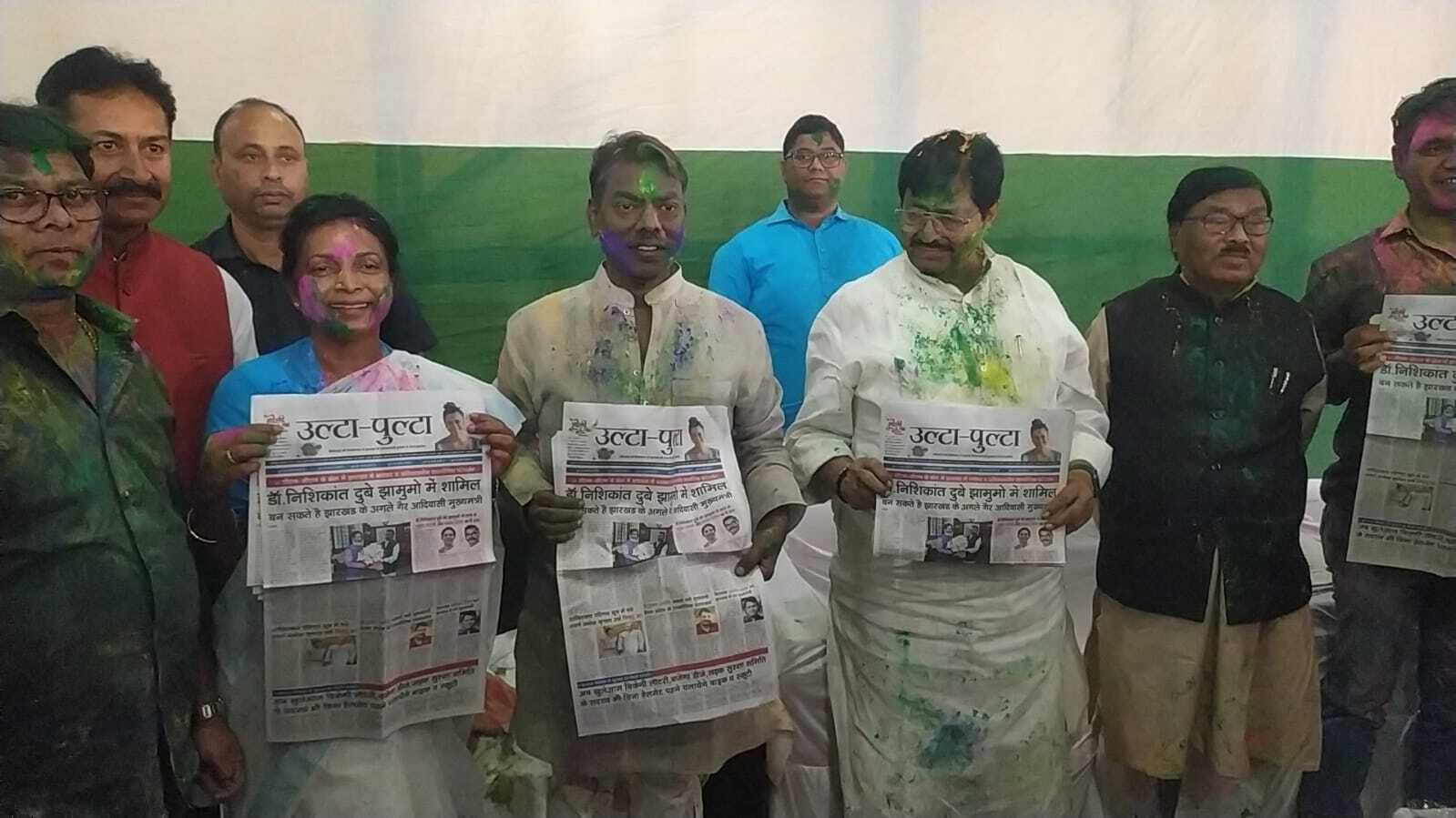 दुमका. दुमका के विधायक और पूर्व मंत्री बसंत सोरेन द्वारा बुधवार को दुमका क्लब में होली मिलन समारोह का आयोजन किया गया. इसमें जन प्रतिनिधियों के अलावा शहर के गणमान्य, तमाम प्रशासनिक पदाधिकारियों, राजनीतिक कार्यकर्ताओं व प्रबुद्धजनों को आमंत्रित किया गया था. इस अवसर पर सभी ने एक-दूसरे को अबीर-गुलाल लगाकर होली की शुभकामनाएं दी. होली के गीत गाए और मस्ती में ठुमके भी लगाए. होरी गानेवाली मंडली का साथ कई पुलिस पदाधिकारियों और राजनेताओं ने भी दिया. कार्यक्रम में बसंत सोरेन के अलावा पूर्वमंत्री व जामा की विधायक डॉ लुईस मरांडी, महेशपुर के विधायक प्रो स्टीफन मरांडी, सारठ के विधायक उदयशंकर सिंह उर्फ चुन्ना सिंह, शिकारीपाड़ा के विधायक आलोक सिंह, पुलिस उप महानिरीक्षक अंबर लकड़ा, उपायुक्त आंजनेयुलु दोड्डे, एसपी पीतांबर सिंह खेरवार, महेशपुर के डीएसपी विजय कुमार, एसडीओ काैशल कुमार, डीटीओ जयप्रकाश करमाली, एसडीपीओ मुख्यालय विजय कुमार महतो, पथ निर्माण विभाग के कार्यपालक अभियंता आशीष कुमार सिन्हा, झामुमो के जिलाध्यक्ष शिव कुमार बास्की, सचिव निशित वरण गोलदार, नगर प्रभारी रवि यादव, डॉ तुषार ज्योति, राजेश राउत, कृष्णा देवी आदि मौजूद थे. इस अवसर पर सारठ विधायक चुन्ना सिंह ने ‘‘रंग बरसे भिंगे चुनर वाली’’, गाना पर खूब लोगों की तालियां बटोरी. महेशपुर एसडीपीओ विजय कुमार ने जमकर फाग गाया. जामा विधायक डॉ लुईस मरांडी ने स्थानीय विधायक बसंत सोरेन का गुणगान करते हुए दुमका व जामा के लोगों को होली की शुभकामनाएं दी. इस अवसर पर स्थानीय विधायक बसंत सोरेन ने लोंगो को होली व रमजान की शुभकामनाएं देते हुए सौहार्दपूर्ण माहौल में होली व ईद मनाने की अपील की. इस अवसर पर उल्टा-पुल्टा नामक होली विशेषांक अखबार का विमोचन किया गया. चार पन्नों से शुरू हुआ यह अखबार पिछले वर्ष जहां 8 पृष्ठ का था. वहीं इस बार का अंक 12 पृष्ठों का है जिसमें राजनीतिज्ञों, अधिकारियों, पुलिस पदाधिकारियों, सामाजिक कार्यकर्ताओं, व्यवसायियों, संवेदकों, चिकित्सकों, शिक्षाविदों और पत्रकारों पर आधारित हास्य और व्यंग्य से भरपूर उल्टा-पुल्टा खबरें प्रकाशित की गयी है. पिछले ढाई दशक से हर वर्ष होली के पूर्व इस विशेष अखबार का प्रकाशन किया जाता रहा है.