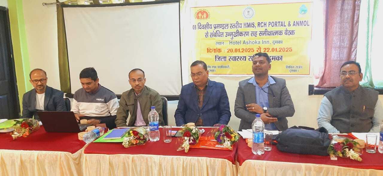 संवाददाता, दुमका हेल्थ मैनेजमेंट एंड इनफार्मेशन सिस्टम, रिप्रोडक्टिव एंड चाइल्ड हेल्थ तथा ऑक्जिलियरी नर्स मिडवाइव ऑनलाइन से संबंधित तीन दिवसीय संताल परगना प्रमंडल स्तरीय उन्मुखीकरण सह समीक्षा बैठक की गयी. 22 जनवरी तक चलने वाले प्रमंडलीय कार्यशाला में एचएमआइएस व आरसीएच पोर्टल और अनमोल से संबंधित समीक्षा की गयी. पहले दिन सिविल सर्जन डॉ बच्चा प्रसाद सिंह और राज्य डाटा प्रबंधक सुबोध कुमार ने बताया कि, तीनों एप में कर्मचारियों के स्तर से स्वास्थ्य के महत्वपूर्ण इंडिकेटर का ऑनलाइन किया जाता है. सभी के लिए यह उन्मुखीकरण बैठक बहुत महत्वपूर्ण है. बैठक में राज्य शहरी प्रबंधक दीपक पांडेय, जिला डाटा प्रबंधक कृष्ण देव सिंह, ज़िला कार्यक्रम प्रबंधक राकेश आनंद, यूनिसेफ के क्षेत्रीय परामार्शी अजय शर्मा उपस्थित थे. इस बैठक में धर्मेंद्र कुमार,अमित कक्षप,मुकेश कुमार के साथ साथ संताल परगना प्रमंडल के सभी जिला के ज़िला डाटा मैनेजर, जिला हॉस्पिटल मैनेजर, प्रखंड डाटा मैनेजर और एनयूएचएम के मैनेजर भाग ले रहे हैं.