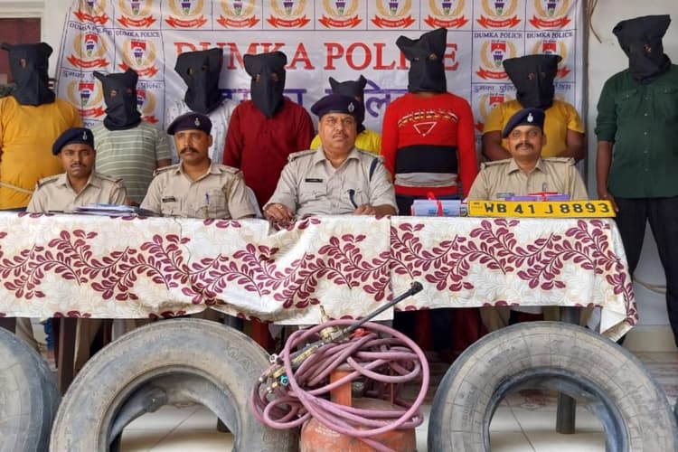दुमका/जामा: पश्चिम बंगाल के गुस्करा से आलू लादकर ले जा रहे जिस पिकअप वैन को अपराधियों ने दुमका जिले के जामा थाना क्षेत्र के बारापलासी के पास लूट लिया था, उस पिकअप को अपराधियों ने दो लाख रुपये में बेच दिया था. गाड़ी काट दी गयी थी और उसके कई टुकड़े कर दिये गये थे. पुलिस ने उस पिकअप वैन के चारो पहिये व स्टेपनी सहित कुल पांच टायर, वाहन को काटने में प्रयुक्त किये गये गैस कटर तथा लूटे गये मोबाइल आदि सामान बरामद कर लिया है. अंतरराज्यीय गिरोह के कुल आठ अपराधी गिरफ्तार कर लिए गये हैं. लूट में प्रयुक्त ऑटोरिक्शा, लिवो मोटरसाइकिल एवं पिकअप के चालक को दहशत में लाने के लिए उपयोग में लाया गया पिस्तौल के आकार की लाइटर बरामद कर ली गयी है. पुलिस ने आठ अपराधियों को न्यायालय में पेश करने के बाद जेल भेज दिया.