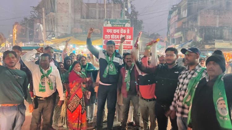 प्रतिनिधि, दुमका नगर झामुमो ने शुक्रवार को टीन बाजार चौक में घाटशिला विधानसभा उपचुनाव में जीत का जश्न उत्साहपूर्वक मनाया. जिला संगठन सचिव रवि कुमार यादव के नेतृत्व में कार्यकर्ताओं ने आतिशबाजी की और एक-दूसरे को मिठाई खिलाकर खुशी साझा की. कार्यक्रम में प्रखंड सचिव विजय मल्लाह, पेंटल दा, मो. कैस, मो. विक्की, राम मंडल, पराक्रम शर्मा, गौरव झा, मधु अली खान, अमित रक्षित, मनोज रक्षित, सोनू शेख, ईश्वर कुमार, राजीव राज समेत दर्जनों कार्यकर्ता मौजूद थे. विजय के नारे लगाकर माहौल को जोश से भर दिया गया. इधर, काठीकुंड में भी झामुमो इकाई ने उम्मीदवार सोमेश चंद्र सोरेन की जीत पर गांधी चौक में जश्न मनाया. प्रखंड अध्यक्ष अब्दुल जब्बार के नेतृत्व में कार्यकर्ताओं ने आतिशबाजी की. जीत की खुशी में मिठाइयां बांटीं. मौके पर सिमोन टुडू, मनोहर अग्रवाल, रविंद्र नाथ लाहा, हेमंत भगत, अजय भगत, जीबनेस सोरेन, इम्तियाज अंसारी सहित कई कार्यकर्ता उपस्थित थे.