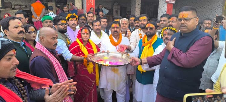 प्रतिनिधि, बासुकिनाथ झारखंड सरकार में श्रम नियोजन मंत्री संजय यादव व देवघर के विधायक सुरेश पासवान शनिवार को बासुकिनाथ पहुंचे. पलटू बाबा के नेतृत्व में पांच सदस्यीय सहयोगी पंडितों द्वारा बाबा के शृंगार पूजन के लिए संकल्प कराकर पूजा संपन्न करायी गयी. इसके बाद पंडितों ने मंदिर प्रांगण में वैदिक आरती करायी. पुरोहितों ने मंत्री व विधायक को फौजदारी बाबा बासुकिनाथ का पूजन कराने के बाद माता पार्वती, काली माता व पीतांबरा भगवती राजराजेश्वरी माता बगलामुखी के मंदिर में भी विशेष पूजा अर्चना करायी. गर्भगृह में पूजन के बाद मंदिर परिसर में बाबा की आरती भी की. इसके बाद मंत्री व विधायक वन विभाग के विश्रामागार पहुंचे, जहां कार्यकर्ताओं ने उन्हें माला पहनाकर भव्य स्वागत किया. कुछ कार्यकर्ताओं ने आवेदन देकर अपनी समस्याएं बतायीं. मंत्री ने कहा कि, उन्होंने राज्य की जनता की सुख-समृद्धि और खुशहाली की कामना बाबा से की. जनता के विश्वास पर खरा उतरने की भरपूर कोशिश करेंगे. मंत्री बनने के बाद पहली बार संजय यादव फौजदारी दरबार पहुंचे. मौके पर मंत्री के भाई वकील यादव, अमरेंद्र यादव, रजनीकांत यादव, महेश साह, बरुण यादव, बाबुल यादव, प्रकाश यादव, मंगल कुमार, संजय यादव, संजीव मांझी, राजेंद्र यादव, मुकेश यादव, संतोष यादव, सुमंत यादव, विजय यादव आदि महागठबंधन के कार्यकर्ता मौजूद थे.