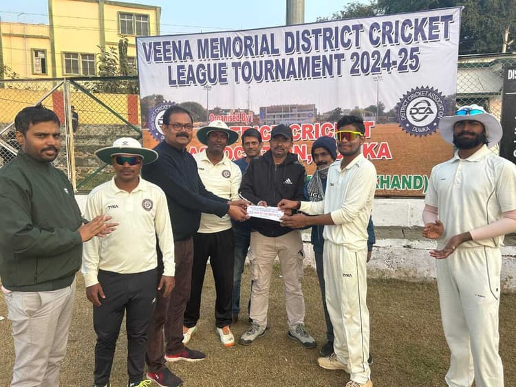 संवाददाता, दुमका रविवार को वीणा मेमोरियल जिला क्रिकेट लीग के मैच में एलएजे कैंप क्रिकेट अकादमी-ए ने ओल्ड फाइटर को 92 रनों से हराया. एलएजे-ए के लक्ष्मण कुमार यादव ने 93 रनों की शानदार पारी खेली, जिसमें 9 चौके और 3 छक्के शामिल थे. गेंदबाजी में समीर पंडित और निखिल राज चौहान ने 3-3 विकेट लिए. जवाब में, ओल्ड फाइटर की शुरुआत खराब रही और टीम ने 13 रन पर 4 विकेट गंवा दिए. मोहम्मद तौसीफ (56 रन) और सौरभ कुमार (30 रन) ने 107 रनों की साझेदारी की, जबकि कप्तान संजय सूरीन ने 41 रन बनाये. एलएजे-ए के लक्ष्मण कुमार यादव को “मैन ऑफ द मैच ” का खिताब मिला.लक्ष्मण कुमार यादव को उनके शानदार बल्लेबाजी के लिए मैन ऑफ द मैच का पुरस्कार के लिए चुना गया. इस अवसर पर जिला क्रिकेट संघ के उपाध्यक्ष संजय तिवारी, सचिव भास्कर अजीत सिंह, संयुक्त सचिव अमित रंगराजन, कार्यकारिणी सदस्य चंद्र किशोर सिंह आदि ने इस मैच का आनंद उठाया.