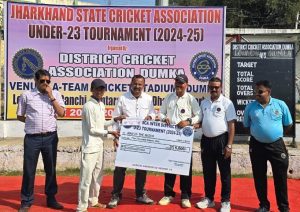 एटीम क्रिकेट स्टेडियम में राज्य क्रिकेट संघ के तत्वावधान में आयोजित इंटर डिस्ट्रिक्ट अंडर-23 क्रिकेट टूर्नामेंट के मैच में लोहरदगा ने गुमला को 146 रनों से पराजित किया.