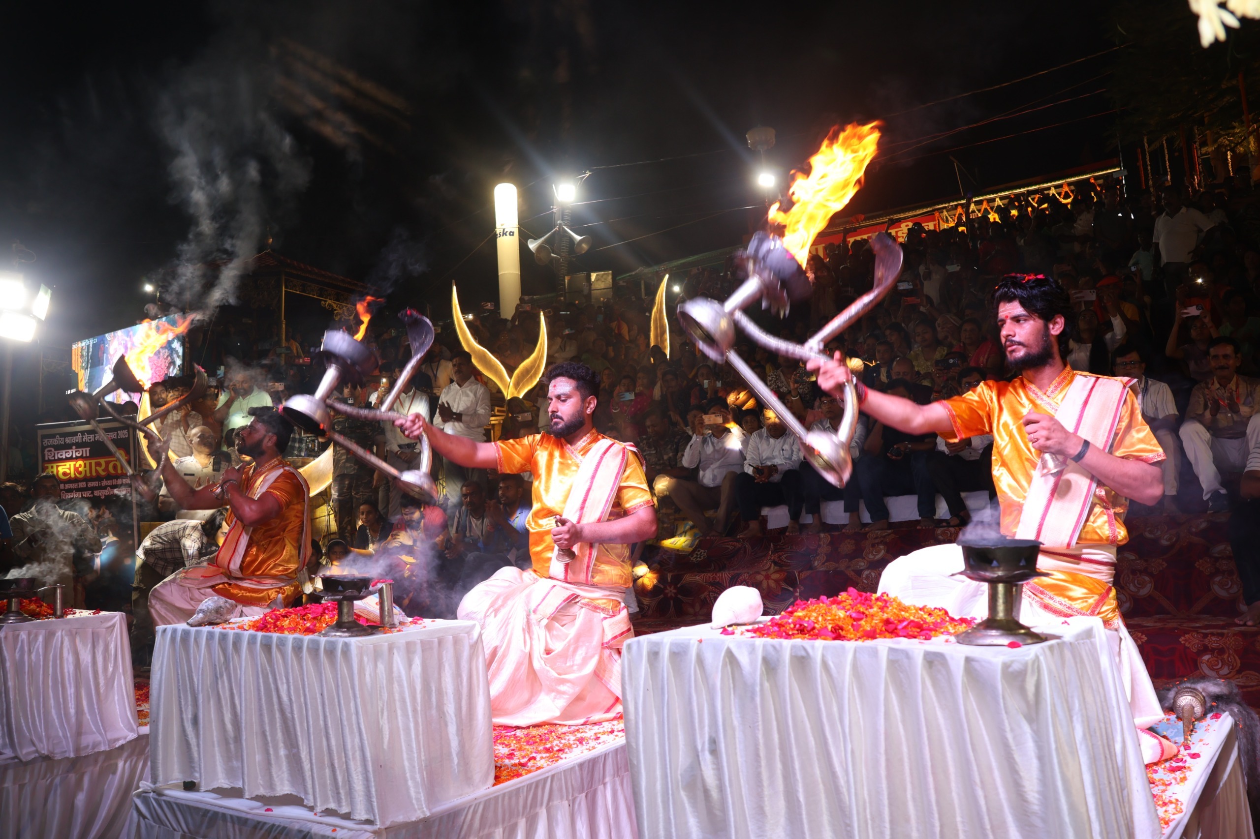 बासुकिनाथ. शिवगंगा घाट पर शुक्रवार संध्या को सावन शुक्ल पक्ष की चतुर्थी तिथि पर वाराणसी और हरिद्वार की तर्ज पर भव्य गंगा महाआरती का आयोजन हुआ. बनारस से आए पंडितों की टीम ने वैदिक मंत्रोच्चारण के बीच आरती संपन्न कराई. पंडित राजू झा के संकल्प के साथ दीये जलाकर गंगा पूजन प्रारंभ हुआ. गणेश पूजन, वरुण कलश स्थापना, बाबा फौजदारीनाथ सहित विभिन्न देवी-देवताओं की पूजा की गई. शिव तांडव, गंगाजी की आरती और कर्पूर की दीपशिखा से आरती हुई. डमरू-शंख की गूंज से वातावरण भक्तिमय हो उठा. अंत में प्रसाद वितरण हुआ.