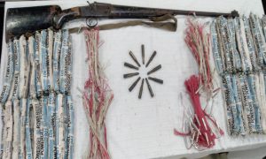 Jharkhand news, Dumka news : दुमका : दुमका जिले की पुलिस ने एसएसबी के 35वीं बटालियन के साथ संयुक्त कार्रवाई करते हुए विधानसभा उपचुनाव (Dumka by election 2020) के दौरान बाधा पहुंचाने के नक्सलियों के नापाक मनसूबे को विफल कर दिया है. पुलिस ने गुप्त सूचना पर कार्रवाई करते हुए एक अदद 0.315 रायफल, उसके 10 जिंदा कारतूस, 50 इलेक्ट्रॉनिक डेटोनेटर और 79 नियो जेल जिलेटिन बरामद किया है.